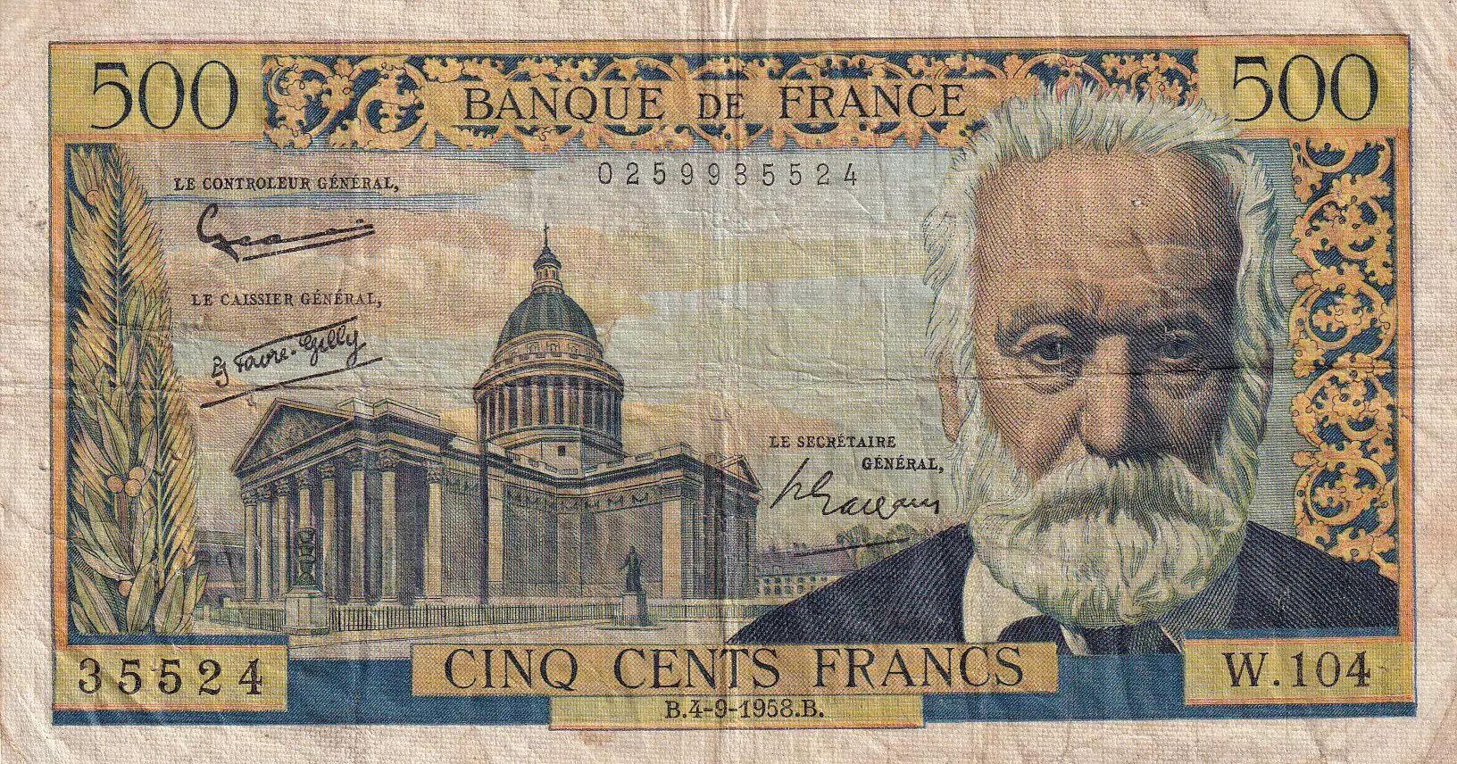 Home > > France 500 Francs - Victor Hugo - 04-09-1958 - Serial W.104 - P.133