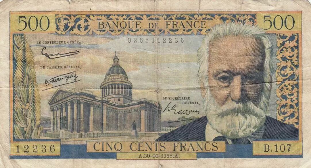 Home > > France 500 Francs - Victor Hugo - 30-10-1958 - Serial B.107