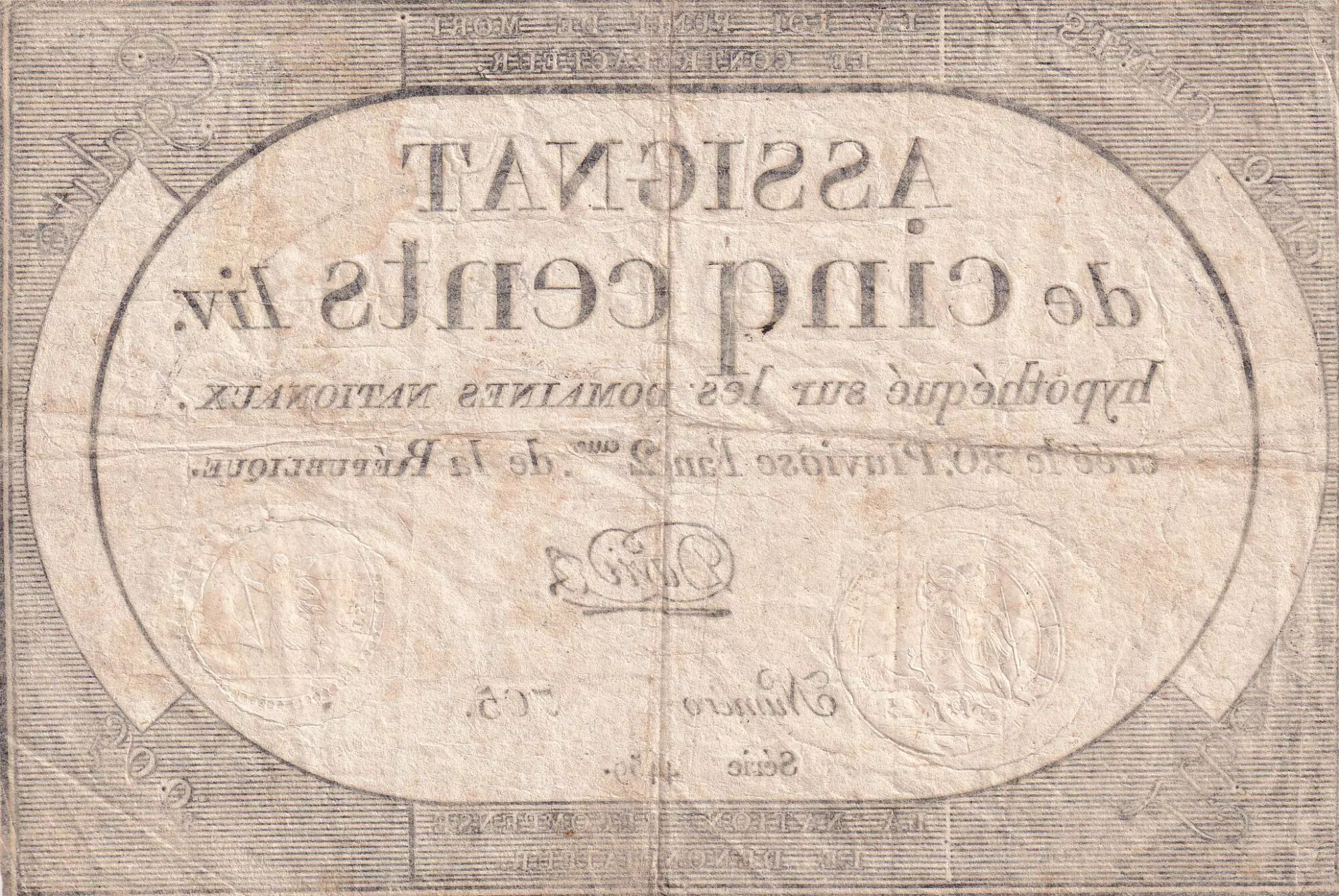 Accueil > Billets Français > Assignats > 500 Livres > France 500 Livres - 20 Pluviose An II (8.2.1794) - TTB - Sign. Busier