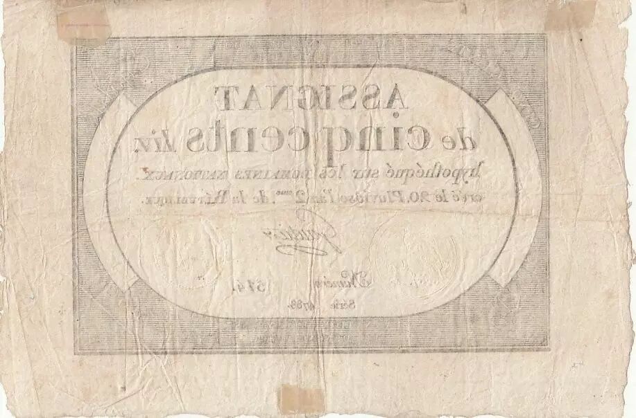 Accueil > Billets Français > Assignats > 500 Livres > France 500 Livres - 20 Pluviose An II (8.2.1794) - TTB - Sign. Gautier