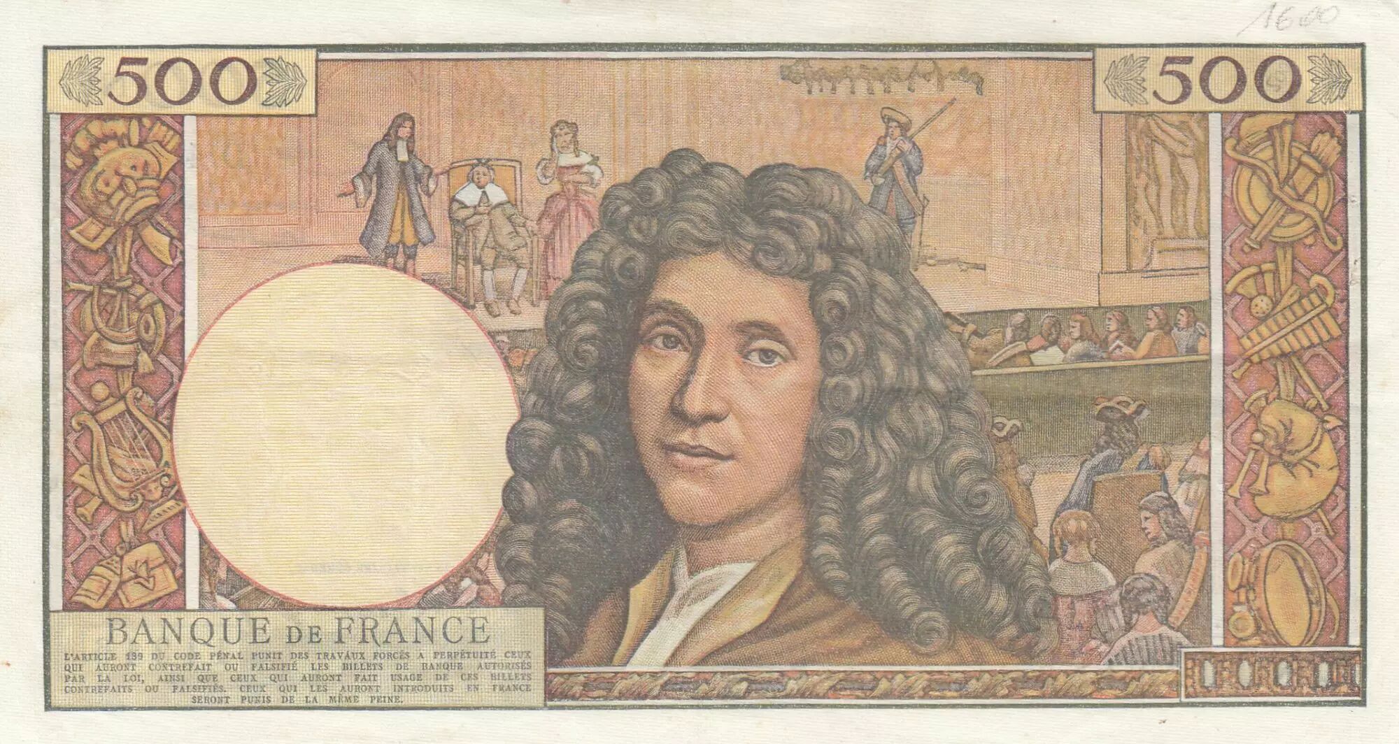 Ce billet de 500 nouveaux francs Molière est un témoignage de l'histoire monétaire française et un hommage à l'un des plus grands auteurs de la littérature française. Sa conception artistique et sa thématique en font un objet de collection prisé par les numismates et les amateurs d'art.