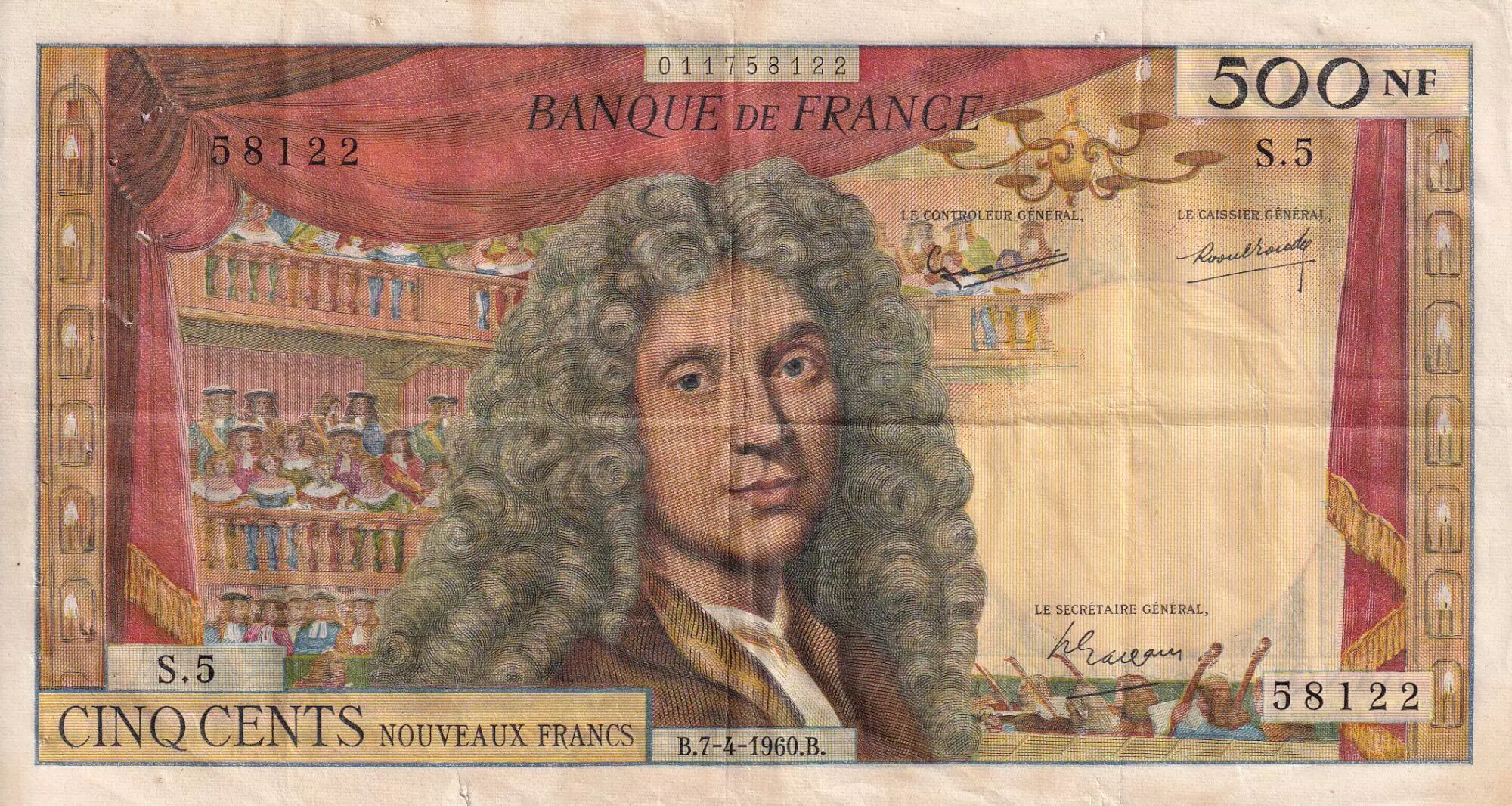 Accueil > Archivage > France 500 NF - Molière - 07-04-1960 - TTB - Série S.5 - F.60.02