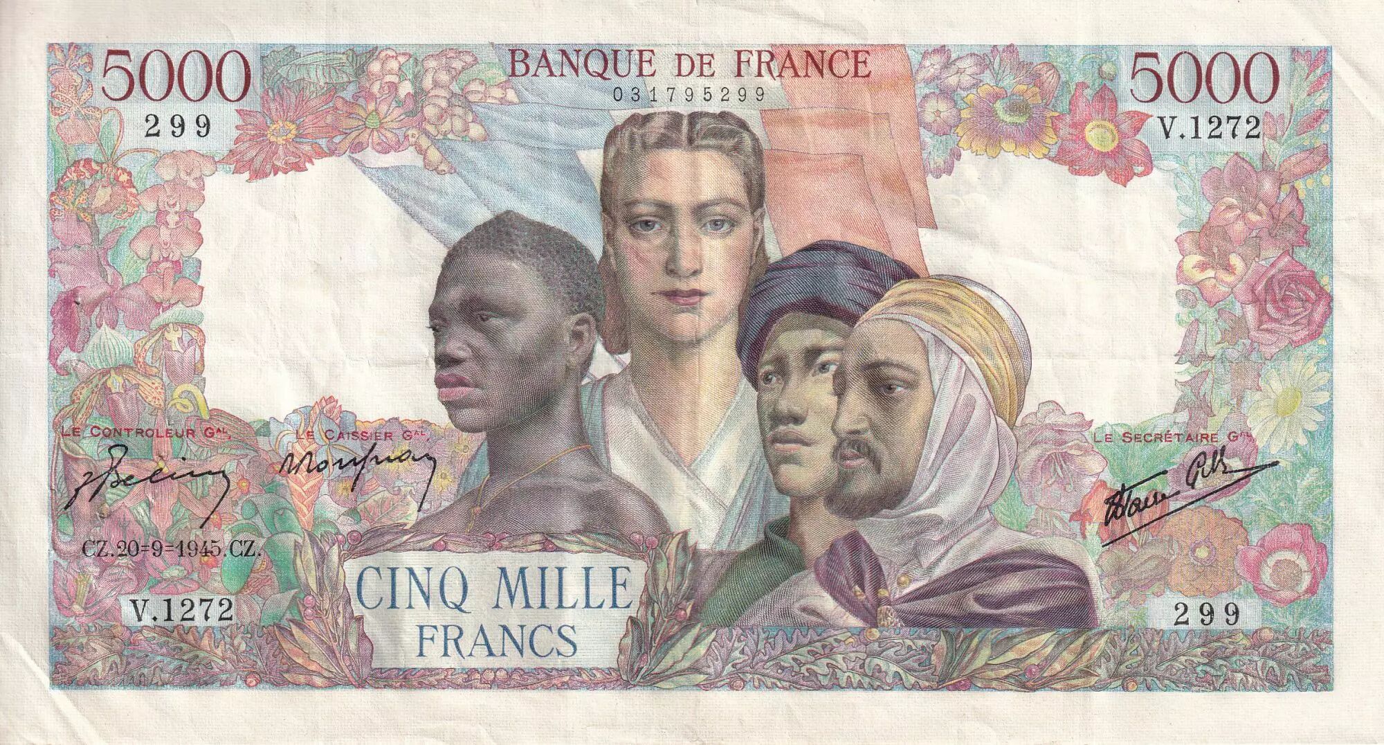 Accueil > Archivage > France 5000 Francs - Empire Français - 20-09-1945 - Série V.1272 - F.47.44