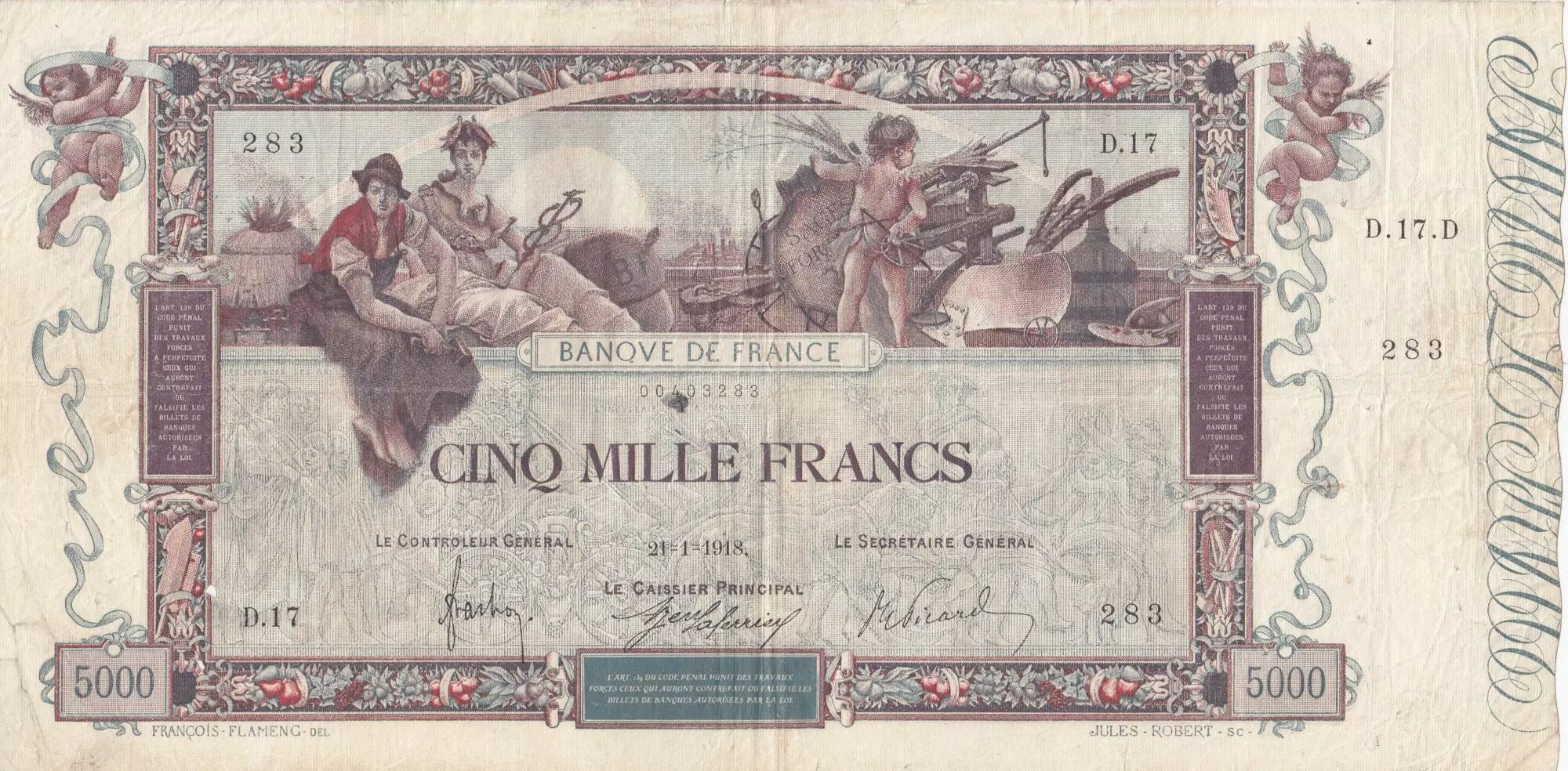 Agréable TTB - billet entier, quelques coupures, pas de manque, papier craquant en partie, quelques salissures et plis.