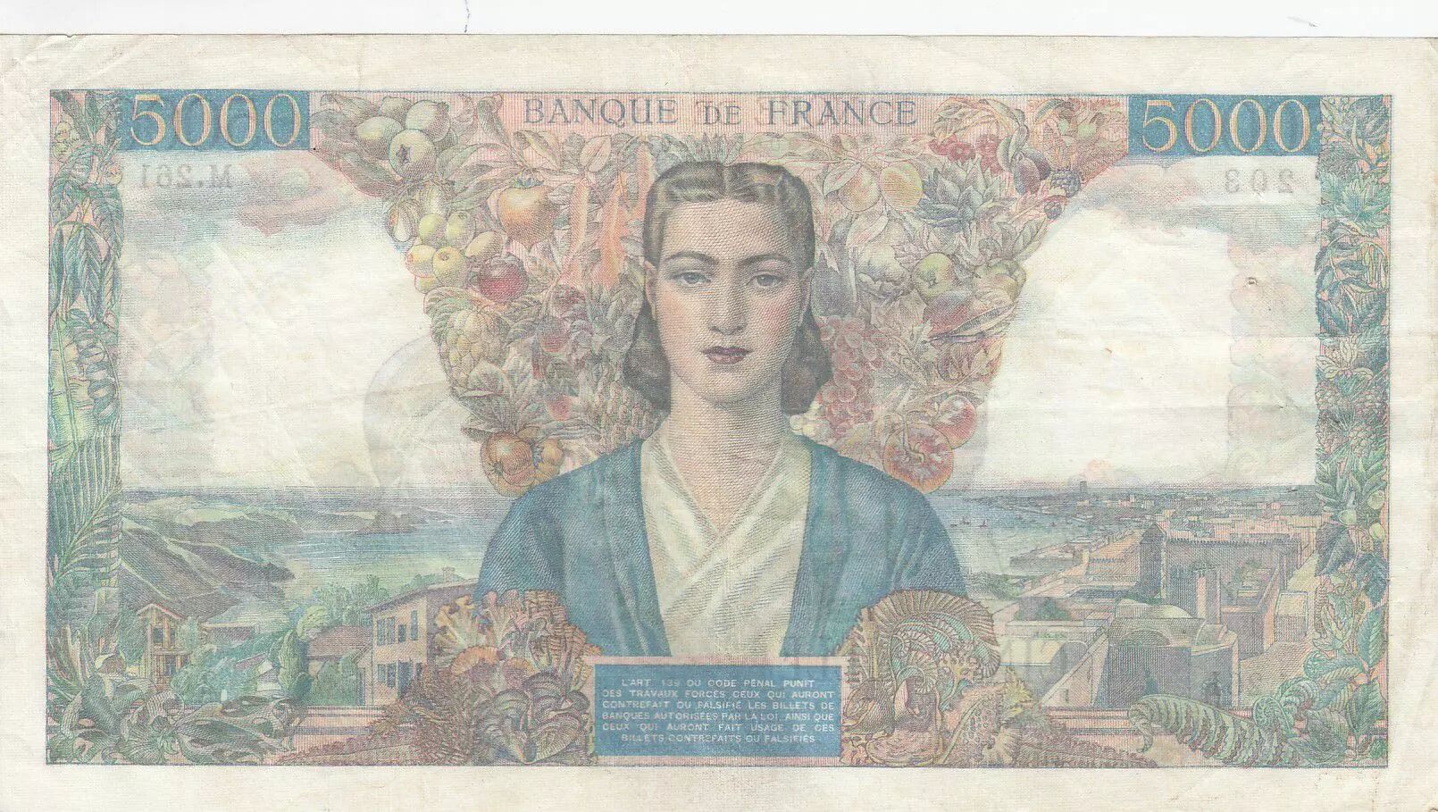 Banknote France 5000 Francs France and colonies - 01-02-1945 Serial M.261 - VF