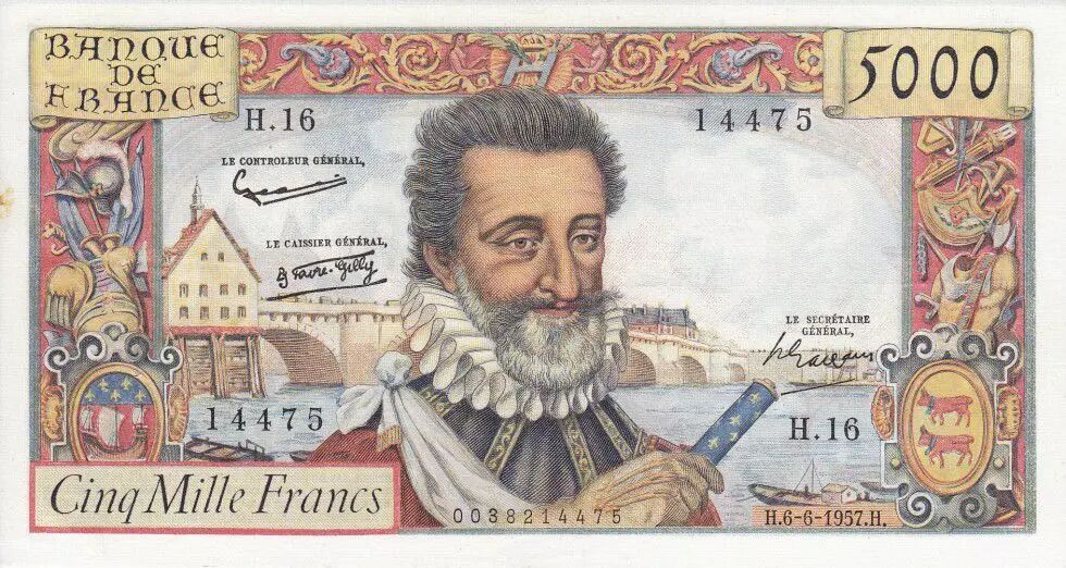 Henri IV - 06-06-1957 Serial H.16 2 pinholes, fold in cross, small task in margin, crisp paper