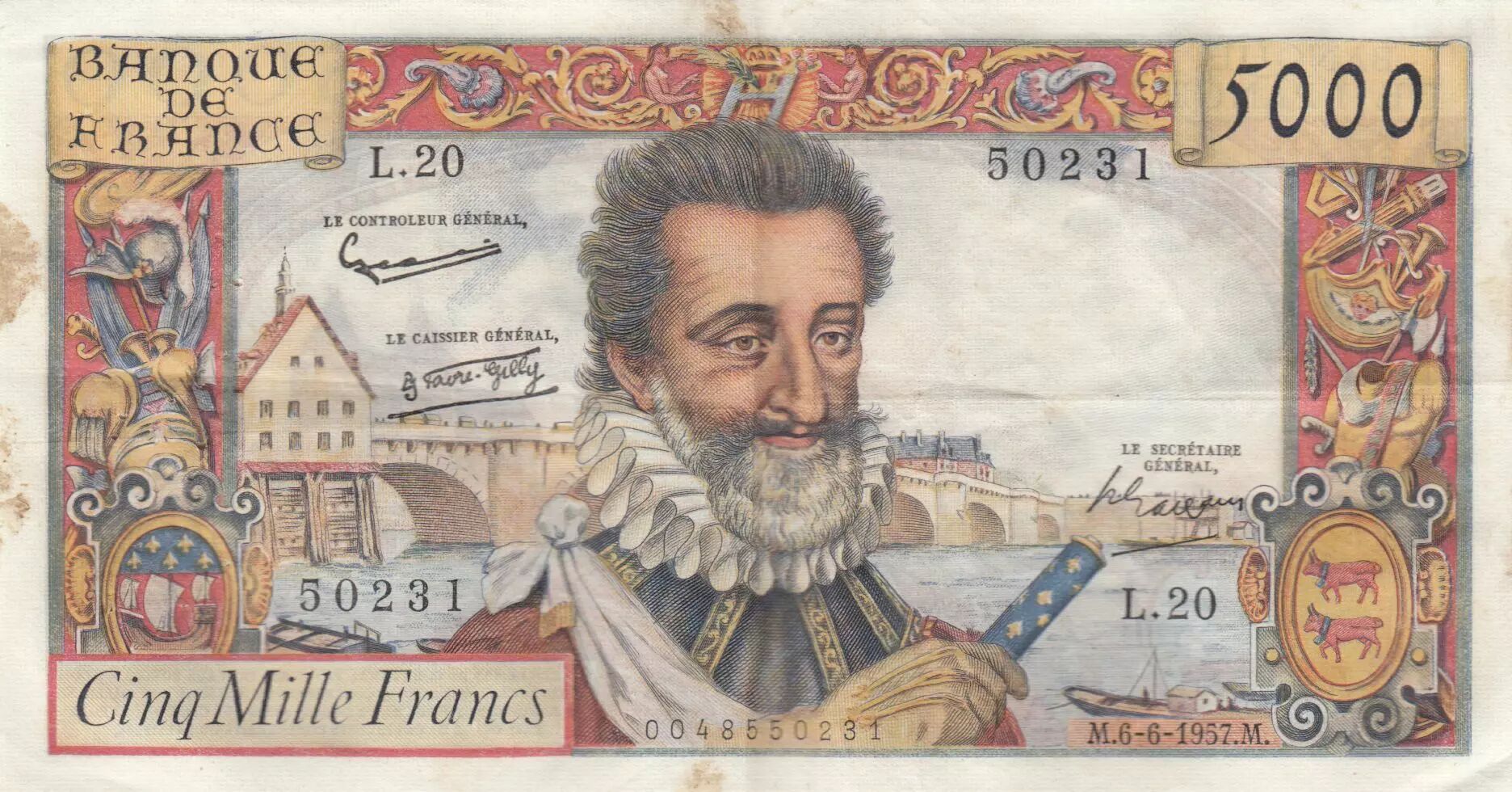 Banknote France 5000 Francs Henri IV - 06-06-1957 Serial L.20 - VF