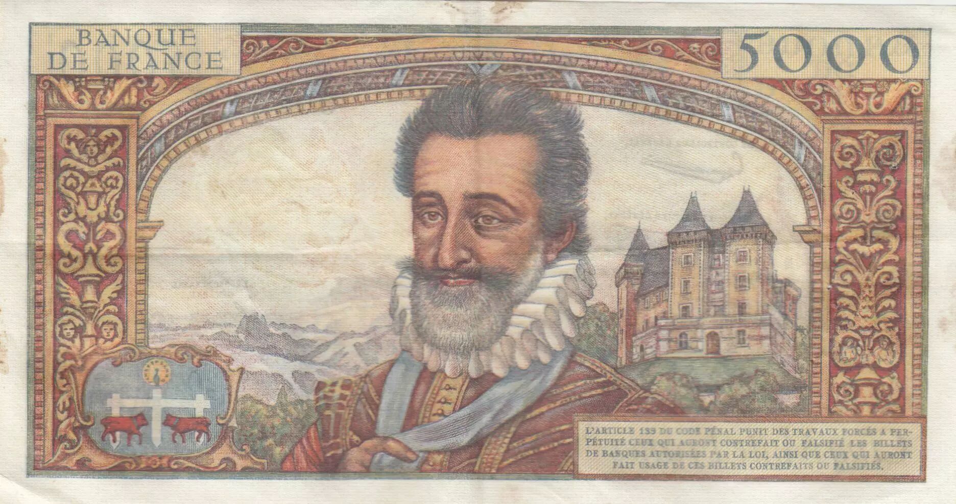 Home > > France 5000 Francs Henri IV - 06-06-1957 Serial L.20 - VF