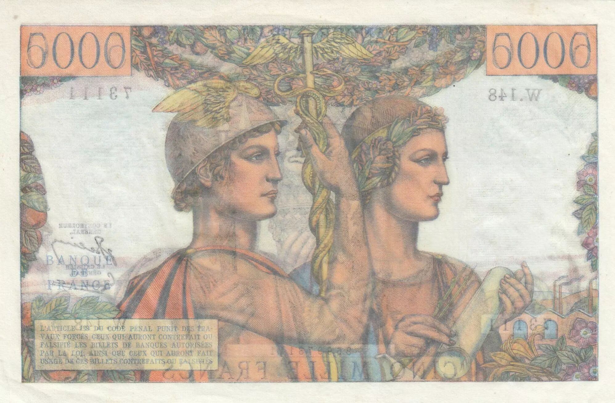 This 5000 Francs banknote is a historical testament to France in the 1950s, both in terms of its economic value and the symbols it conveys. It represents a prized collectible object for its rarity and historical value.