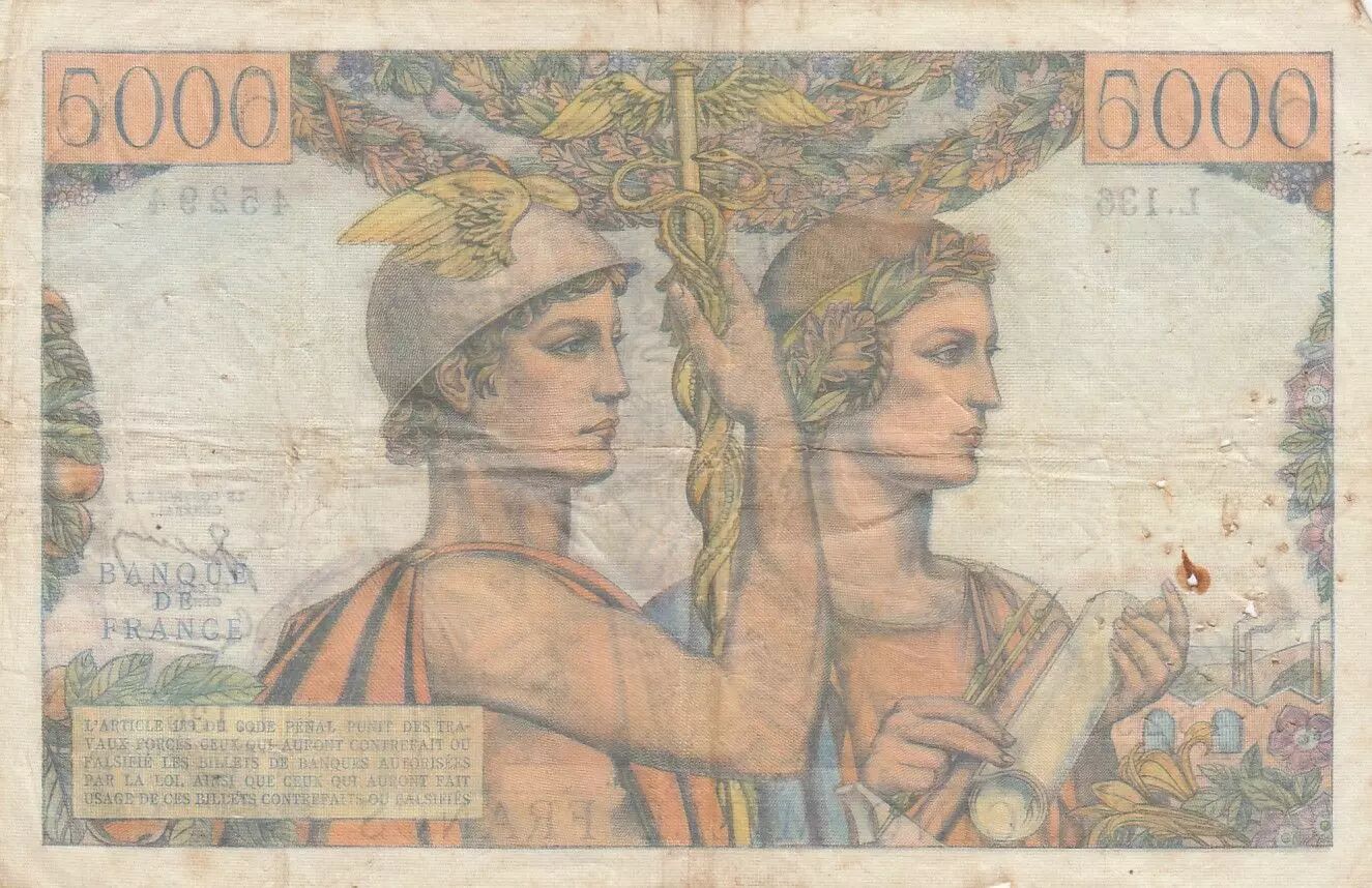 Banknote France 5000 Francs Sea and Countryside - 02-07-1953 - Serial L.136