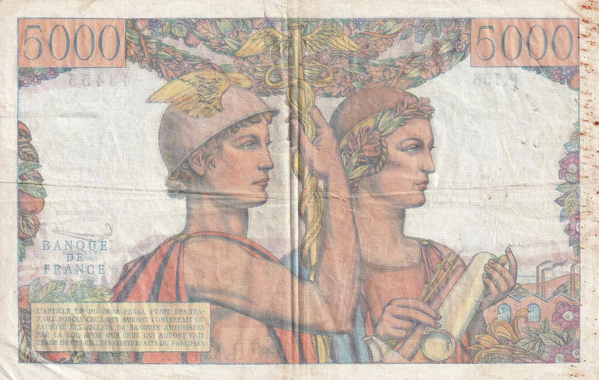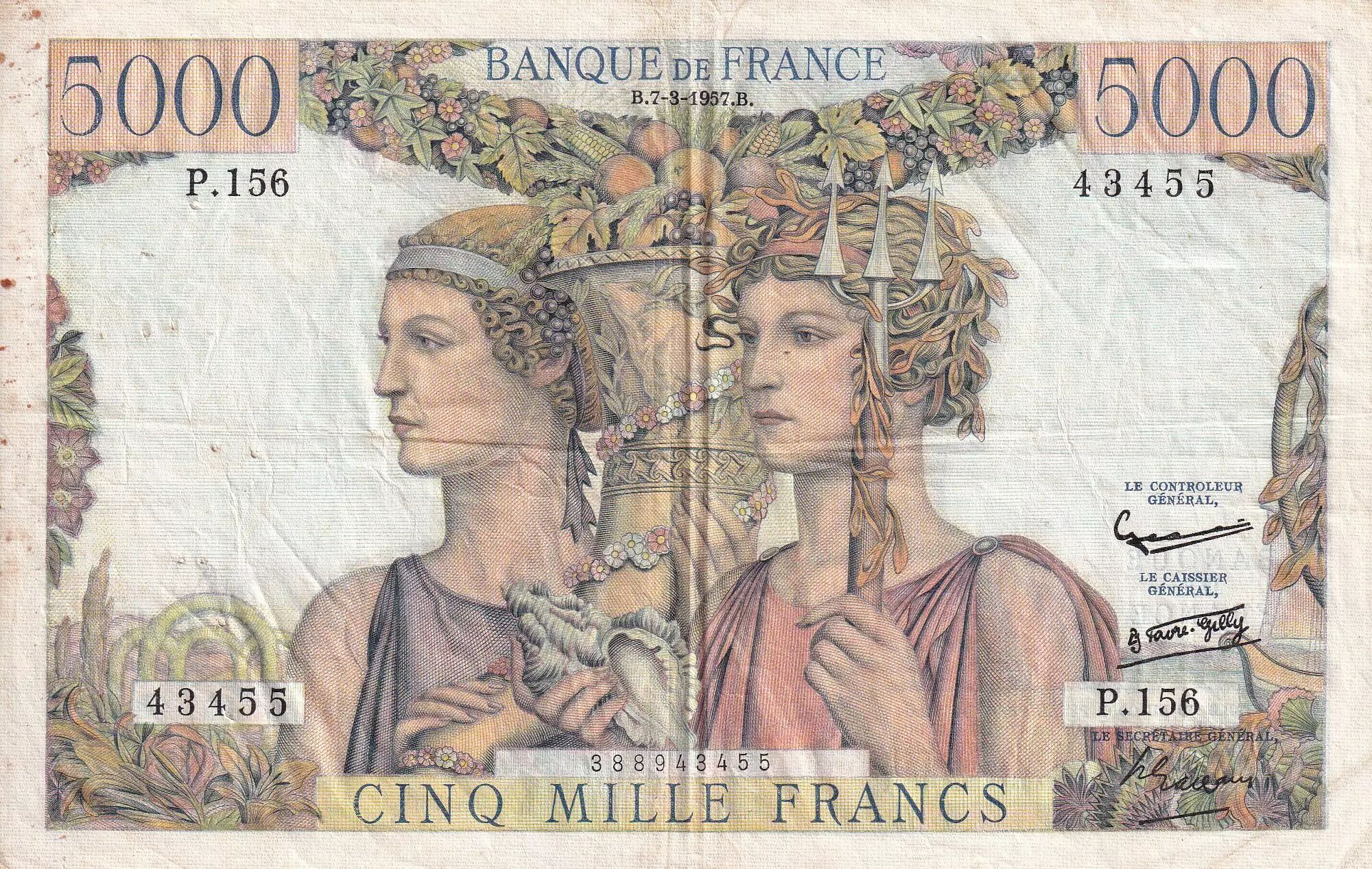 Home > > France 5000 Francs - Sea and Countryside - 07-03-1957 - Serial P.156- F to VF - P.131c