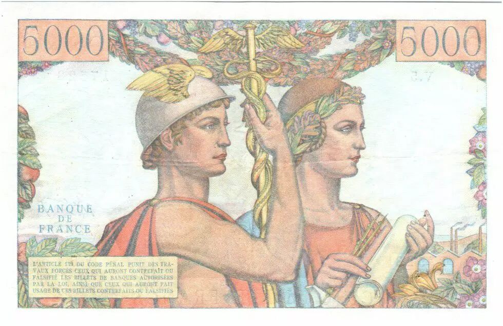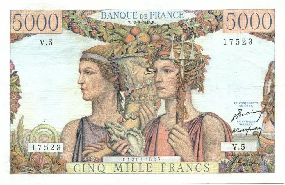 Sea and Countryside - 10-03-1949 Serial V.5 2 pinholes, folds, crisp paperIssuing date : 1949-03-10Alphabet : V Serie : 5-17523
