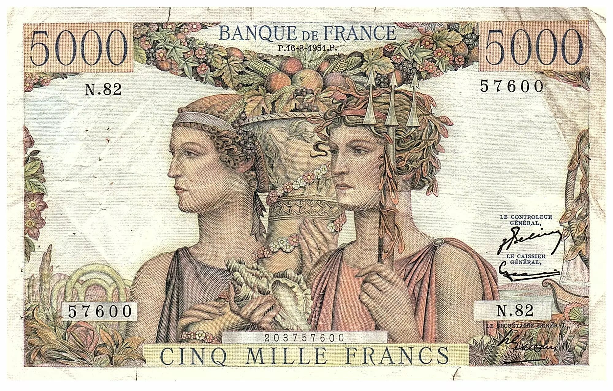 Banknote France 5000 Francs Sea and Countryside - 16-08-1951 - Serial N.82 - F.48.05