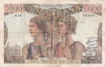 Accueil > Billets Français > Billets Banque de France > Billets 5000 francs > Terre et Mer type 1949 (1949-1957) > France 5000 Francs Terre et Mer - 01-02-1951 - Série B.44 - F.48.03