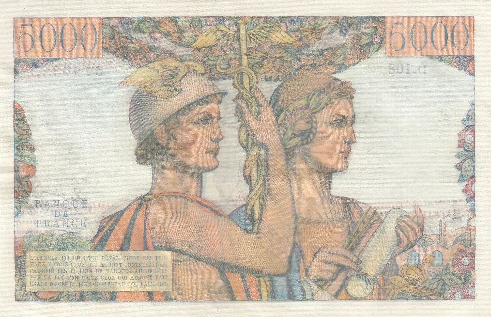 Ce billet de 5000 francs est un témoin de l'histoire économique et artistique de la France du milieu du XXe siècle. Son design soigné et ses symboles forts en font un objet de collection prisé par les numismates et les passionnés d'histoire.