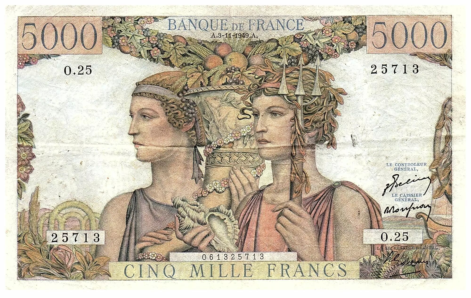 Accueil > Billets Français > Billets Banque de France > Billets 5000 francs > France 5000 Francs Terre et Mer - 03-11-1949 - Série O.25 - F.48.02