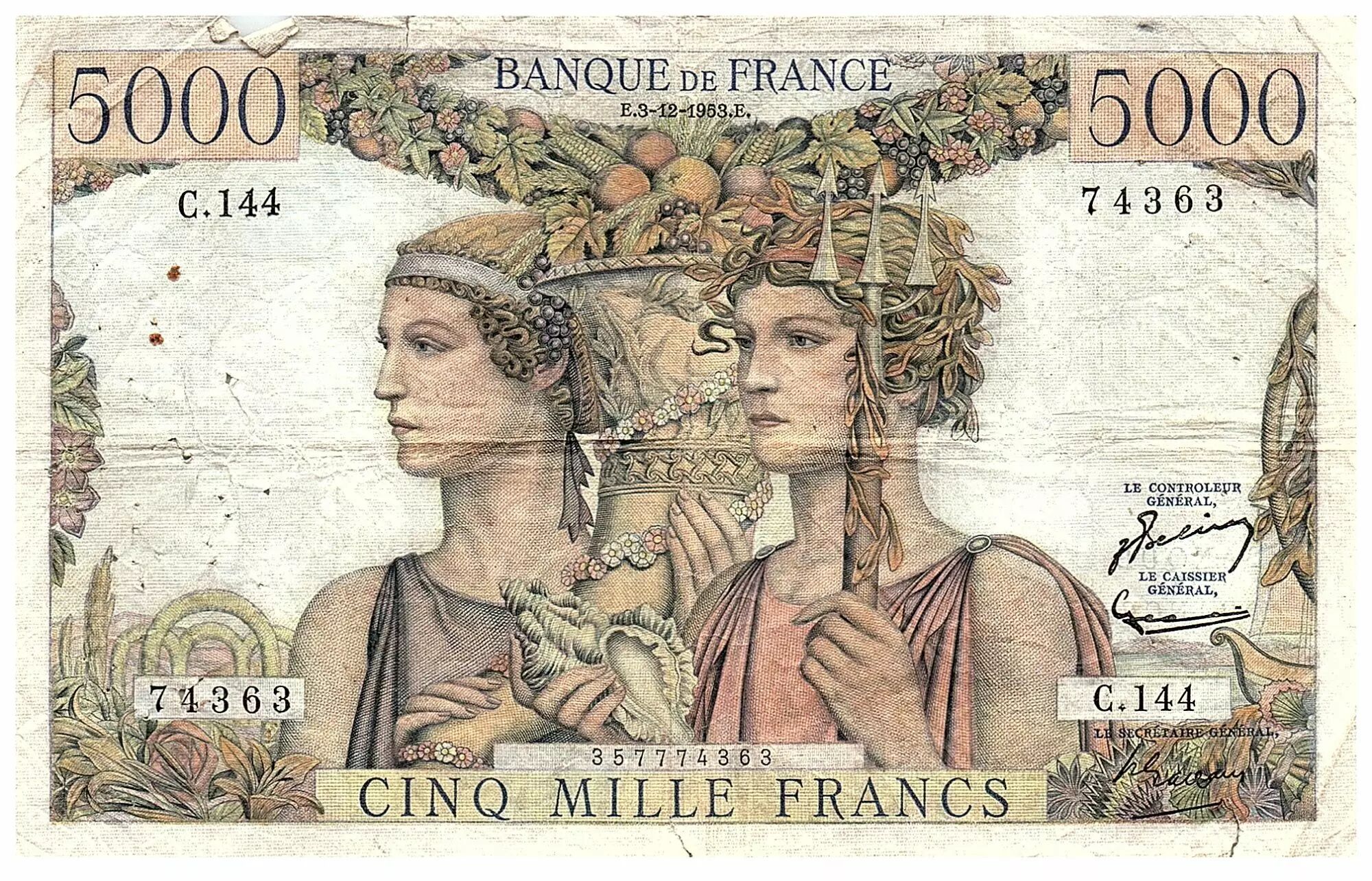 Accueil > Archivage > archivage-Billets Français > France 5000 Francs - Terre et Mer - 03-12-1953 - Série C.144