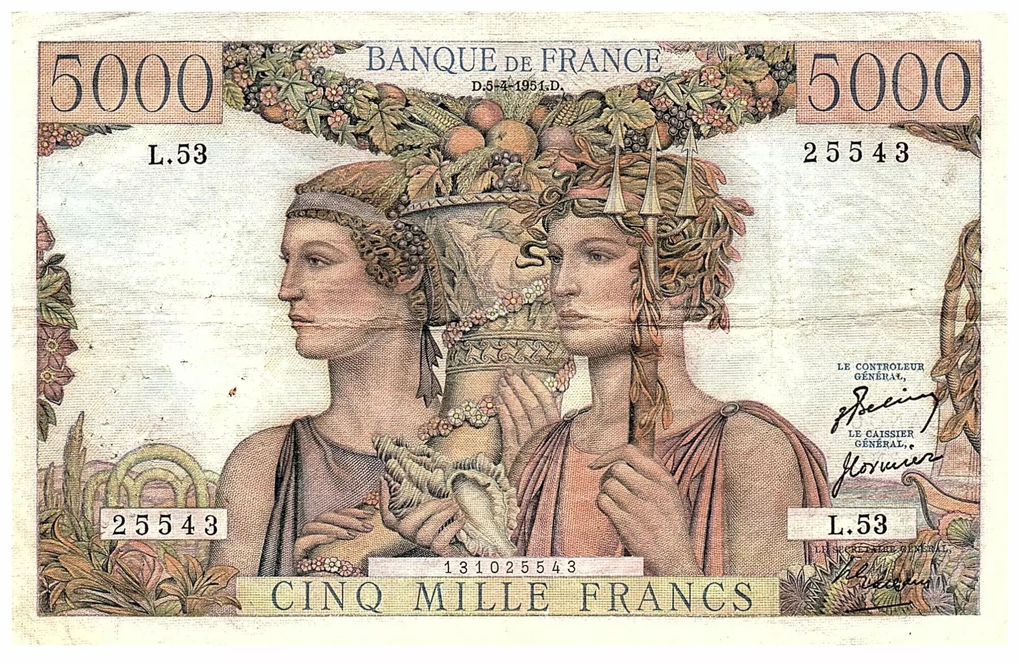 Accueil > Billets Français > Billets Banque de France > Billets 5000 francs > France 5000 Francs Terre et Mer - 05-04-1951 - Série L.53 - F.48.04