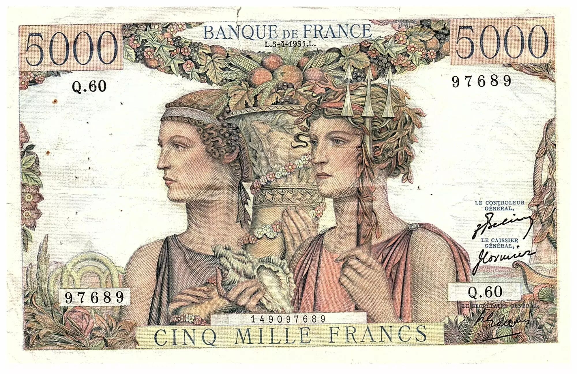 Accueil > Billets Français > Billets Banque de France > Billets 5000 francs > France 5000 Francs Terre et Mer - 05-04-1951 - Série Q.60 - F.48.04
