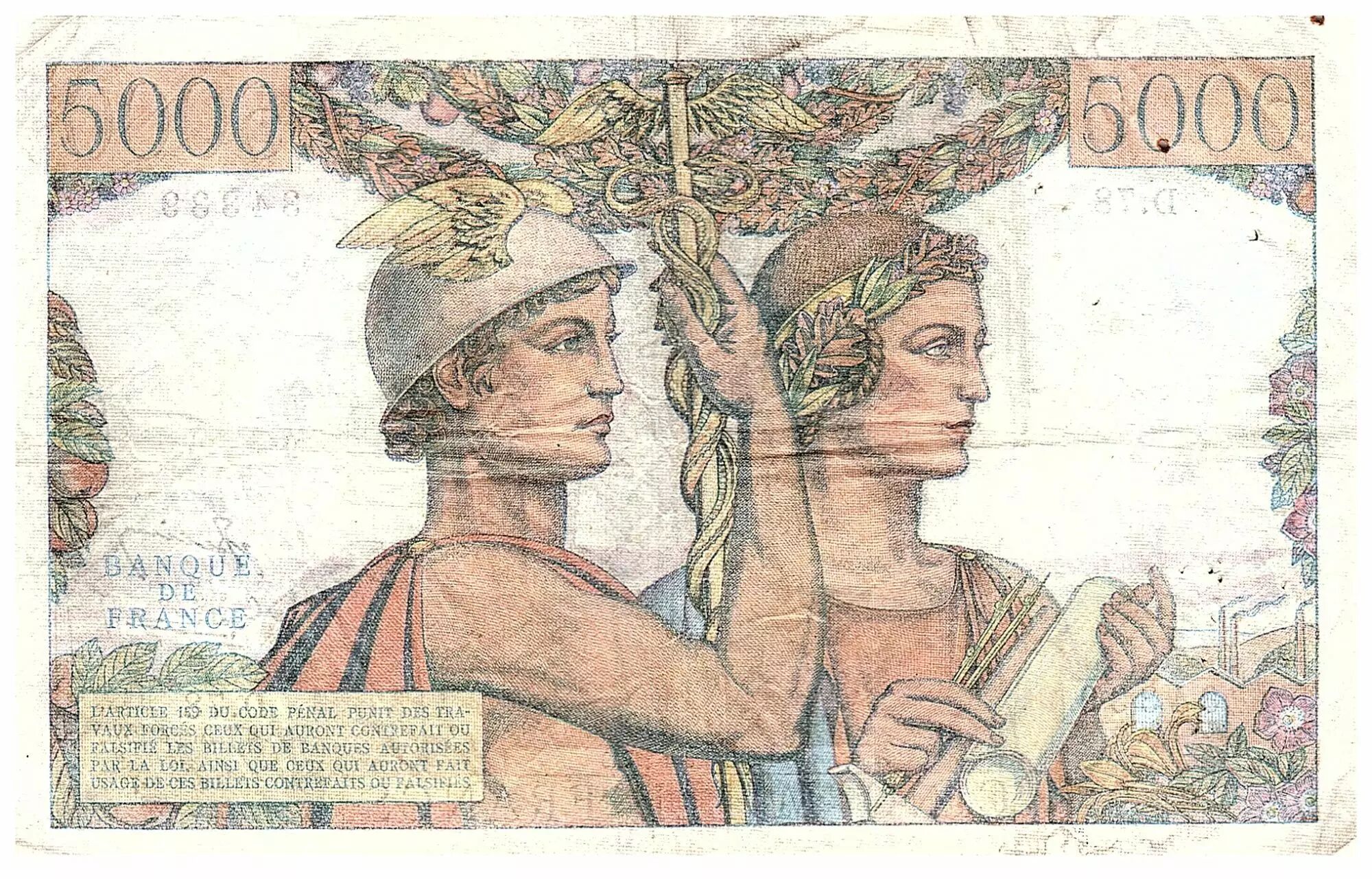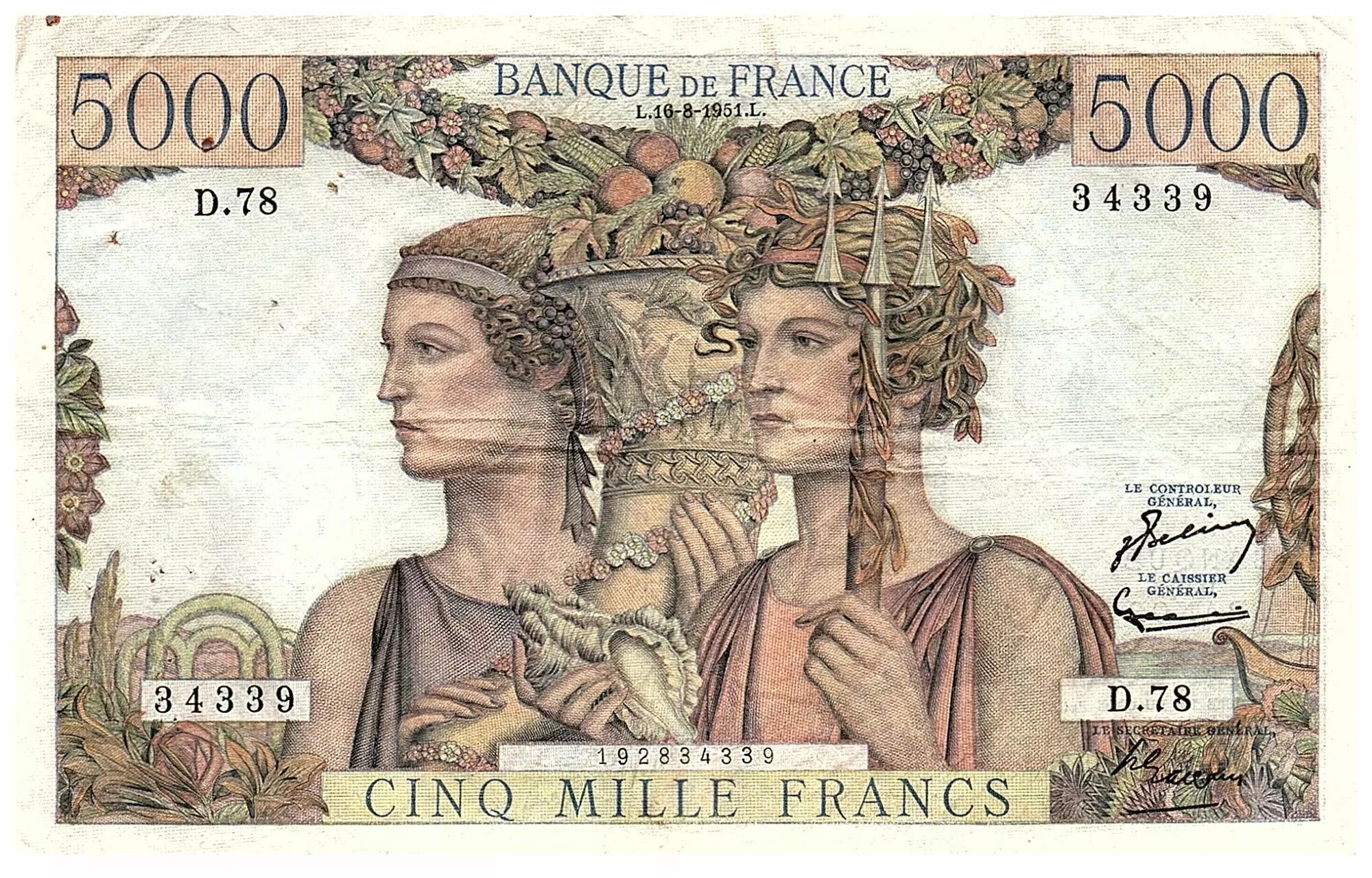 Accueil > Archivage > France 5000 Francs Terre et Mer - 16-08-1951 - Série D.78 - F.48.05