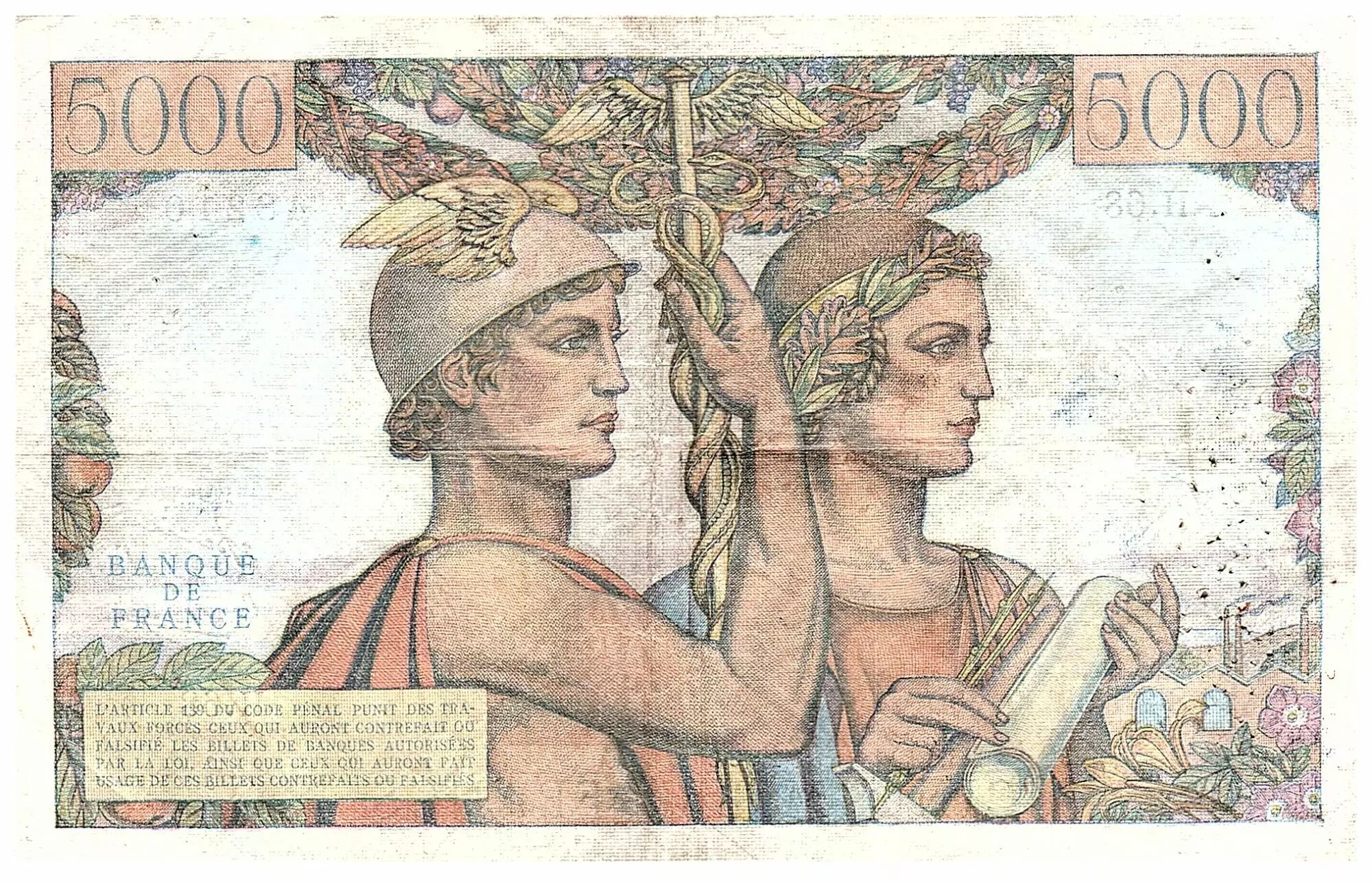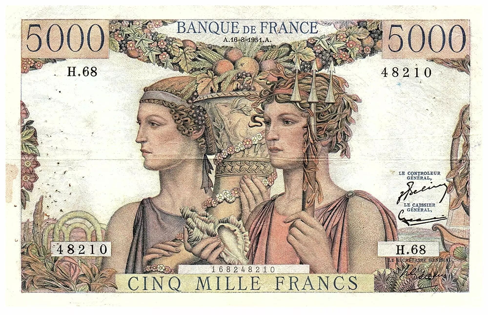 Accueil > Archivage > France 5000 Francs Terre et Mer - 16-08-1951 - Série H.68 - F.48.05
