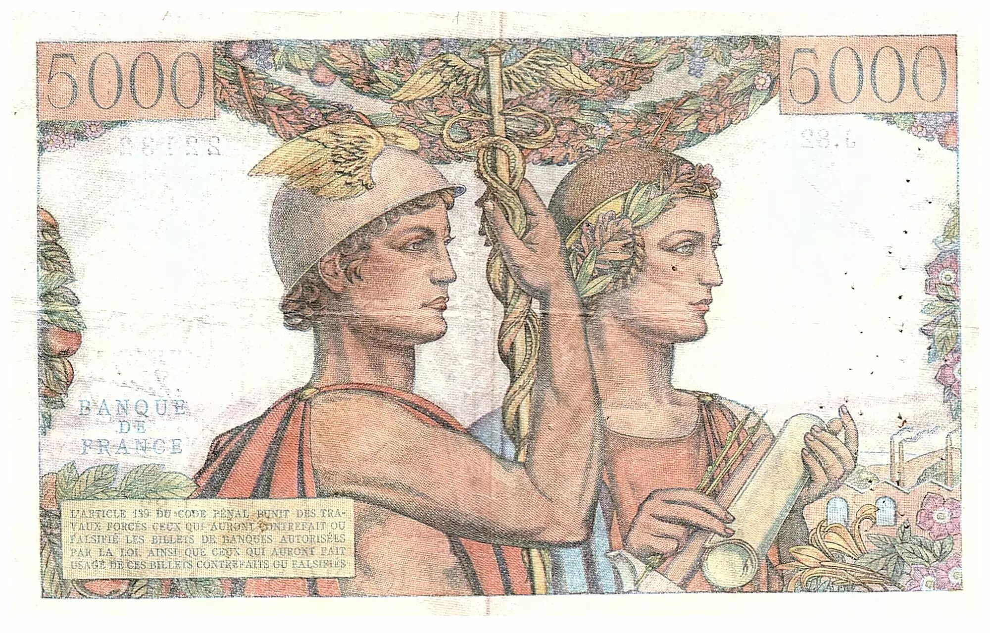 Accueil > Archivage > France 5000 Francs Terre et Mer - 16-08-1951 - Série J.82 - F.48.05