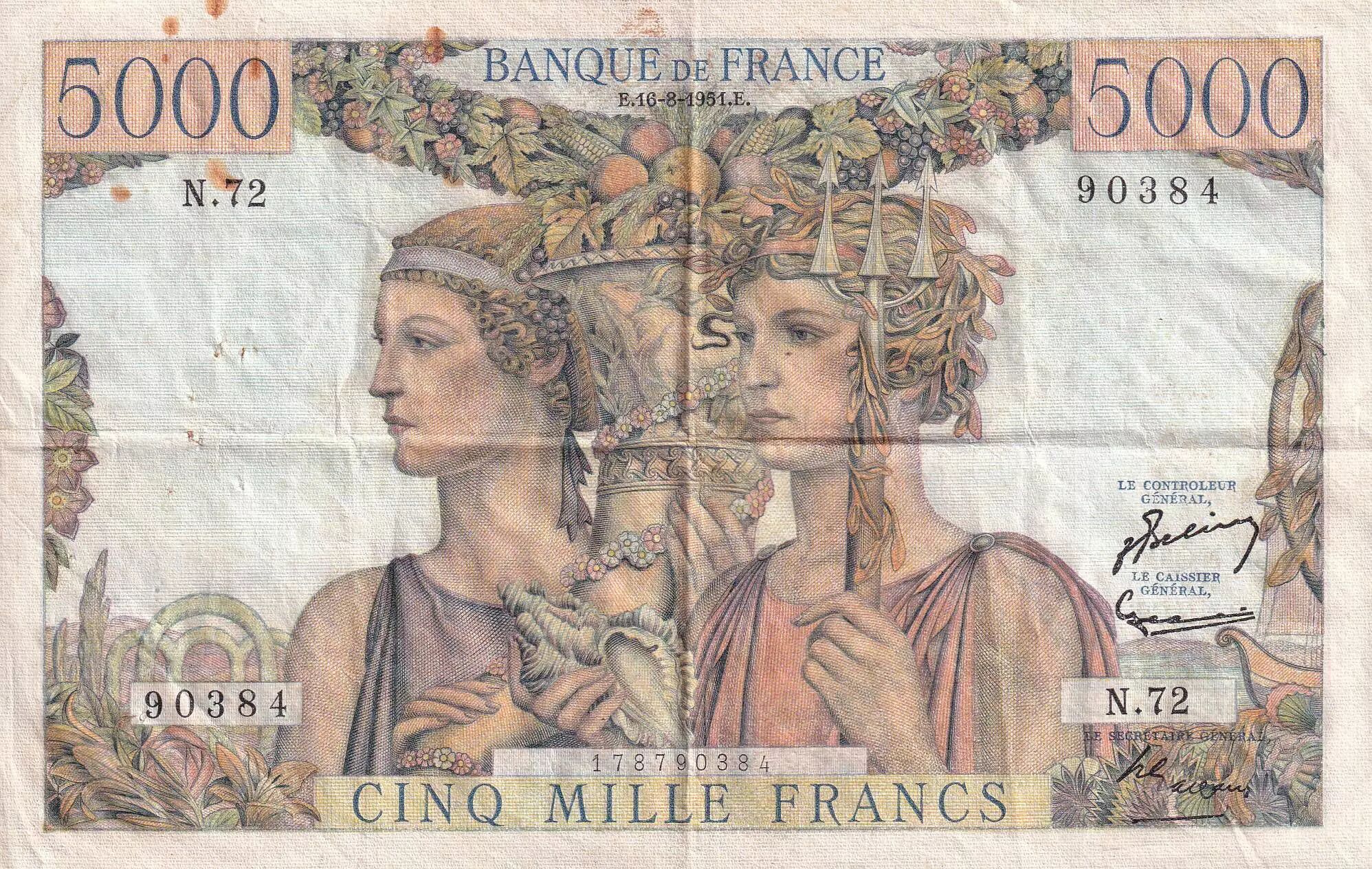 Accueil > Archivage > France 5000 Francs - Terre et Mer - 16-08-1951 - Série N.72 - TTB - F.48.05