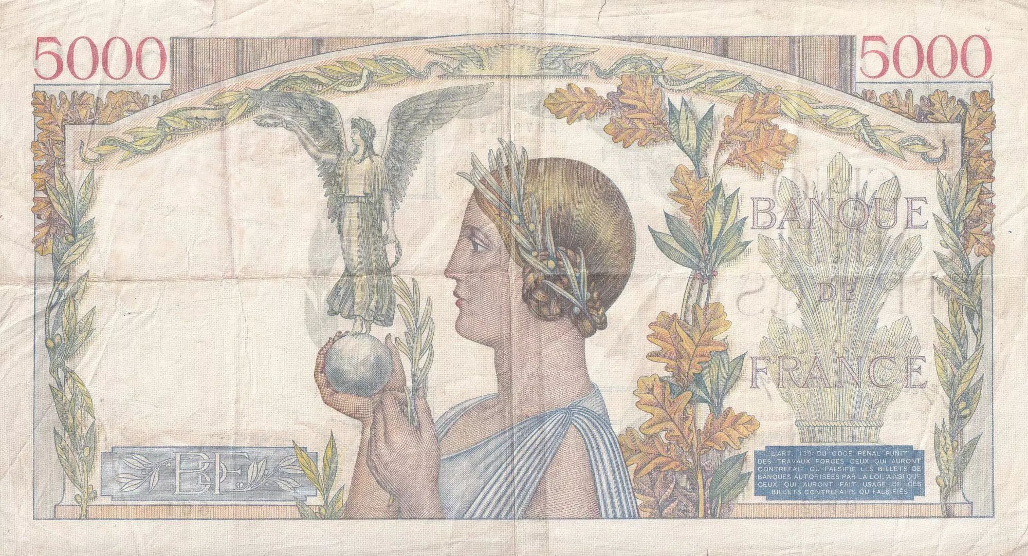 Accueil > Archivage > France 5000 Francs - Victoire - 09-07-1942 - Série Q.952 - F.46.38