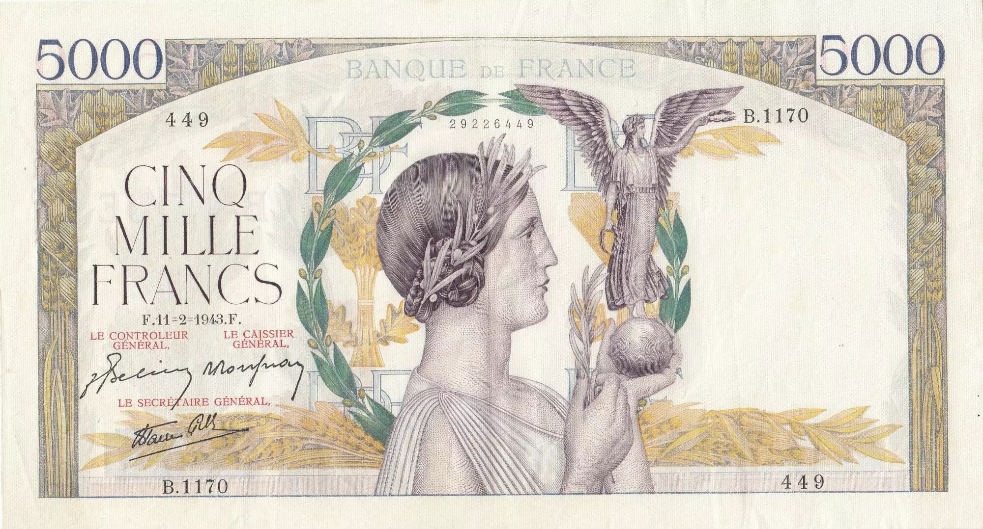Billet France 5000 Francs - Victoire - 11-02-1943 - Série B.1170