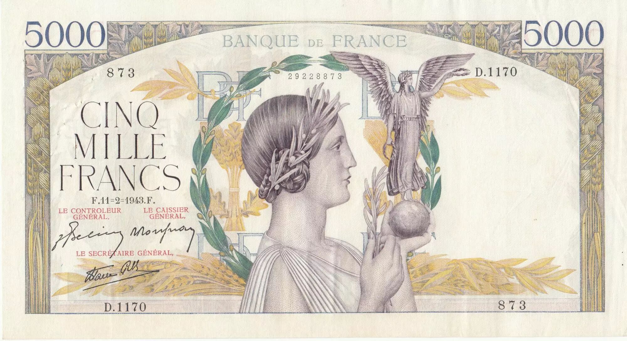 Billet France 5000 Francs - Victoire - 11-02-1943 - Série D.1170