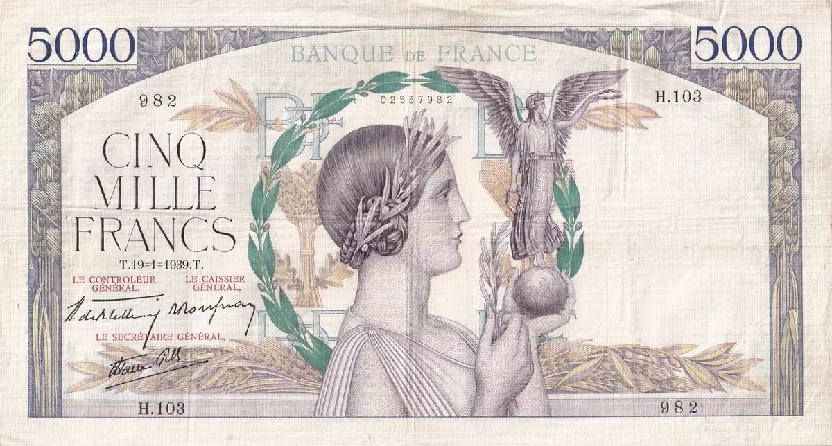 Accueil > Archivage > France 5000 Francs - Victoire - 19-01-1939 - Série H.103