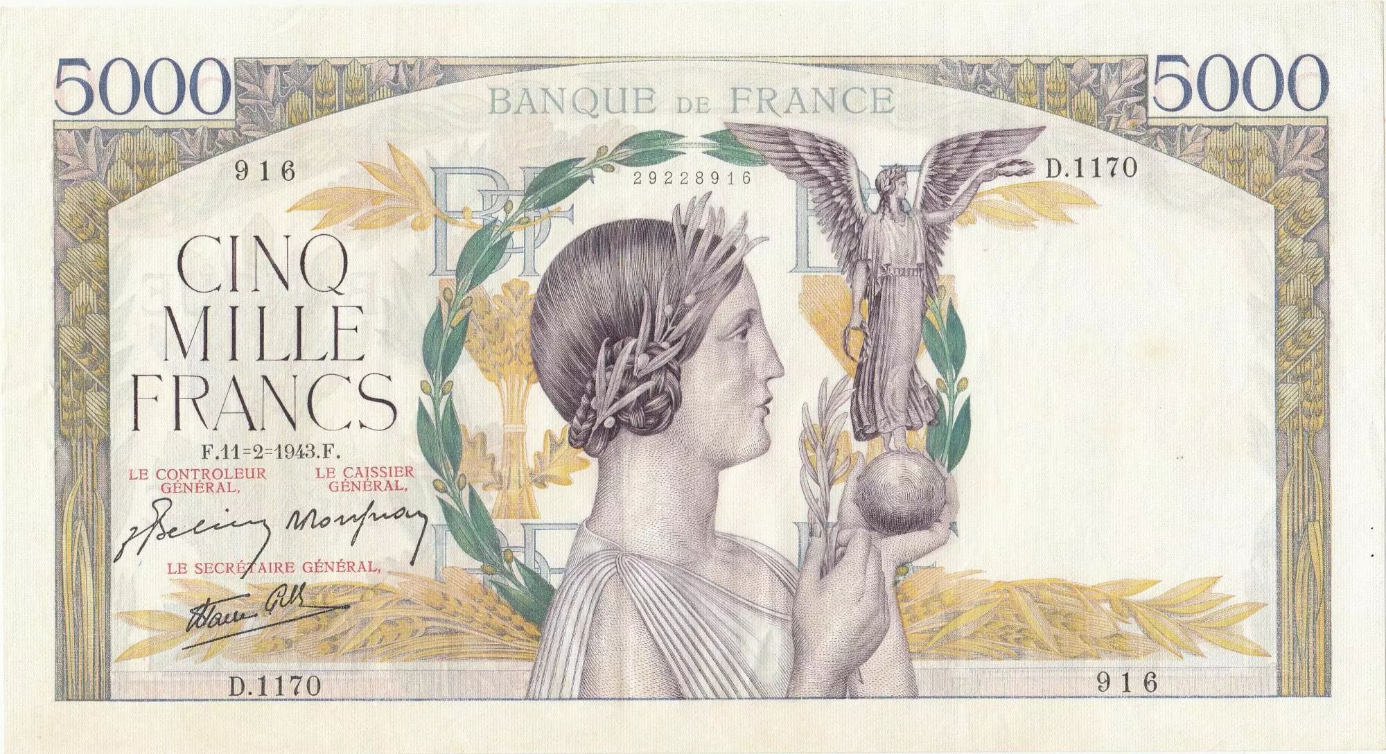 Banknote France 5000 Francs - Victory - 11-02-1943 - Serial D.1170