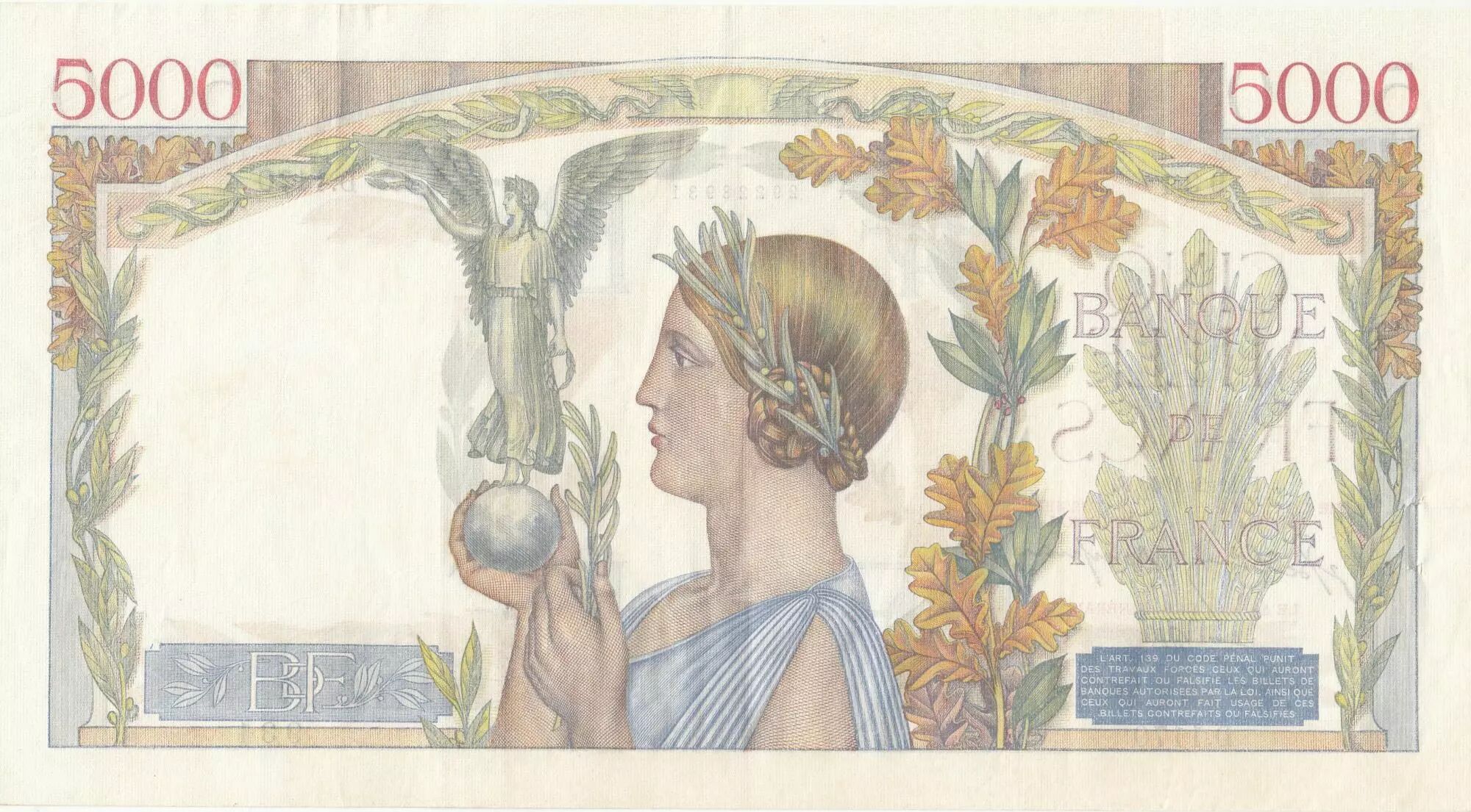 Banknote France 5000 Francs - Victory - 11-02-1943 - Serial D.1170