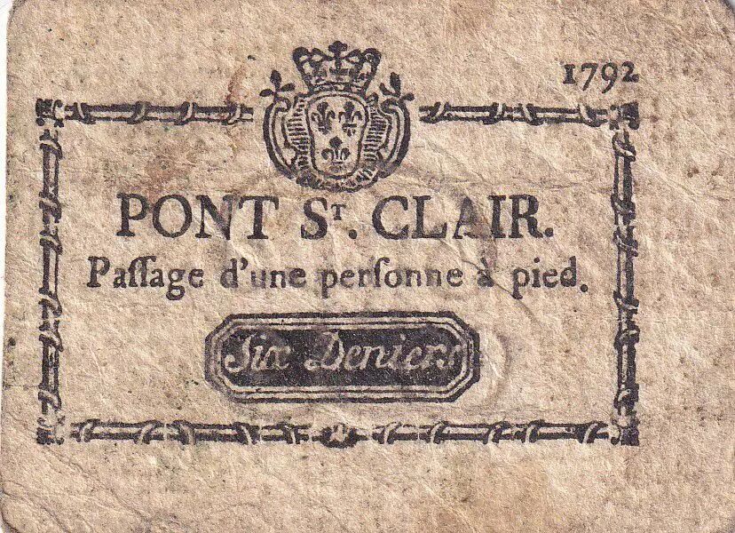 Billet France 6 Deniers - Pont St Clair - Passage d'une personne à pied - 1792 - TTB