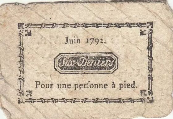 Banknote France 6 Deniers - Rhône - Pont-Saint-Clair - Passage d'une personne à pied - 1792 - Kol.69.43