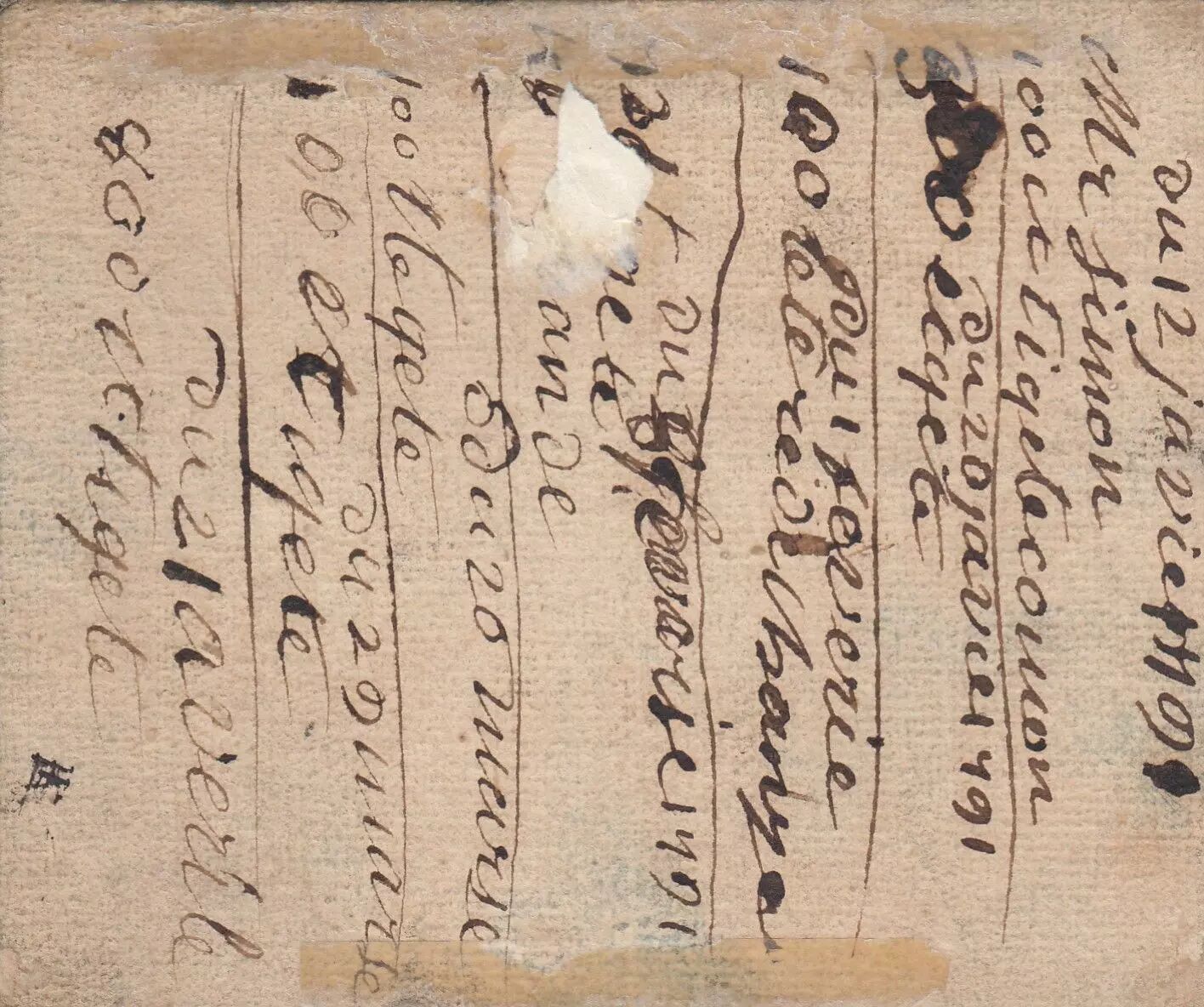 Folds, stains, trace of scotch tape on reverse