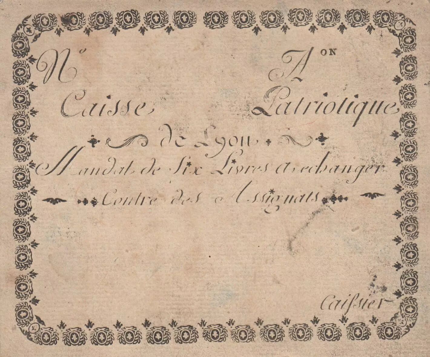 Billet France 6 livres - Rhône - Lyon - Caisse Patriotique - 1790