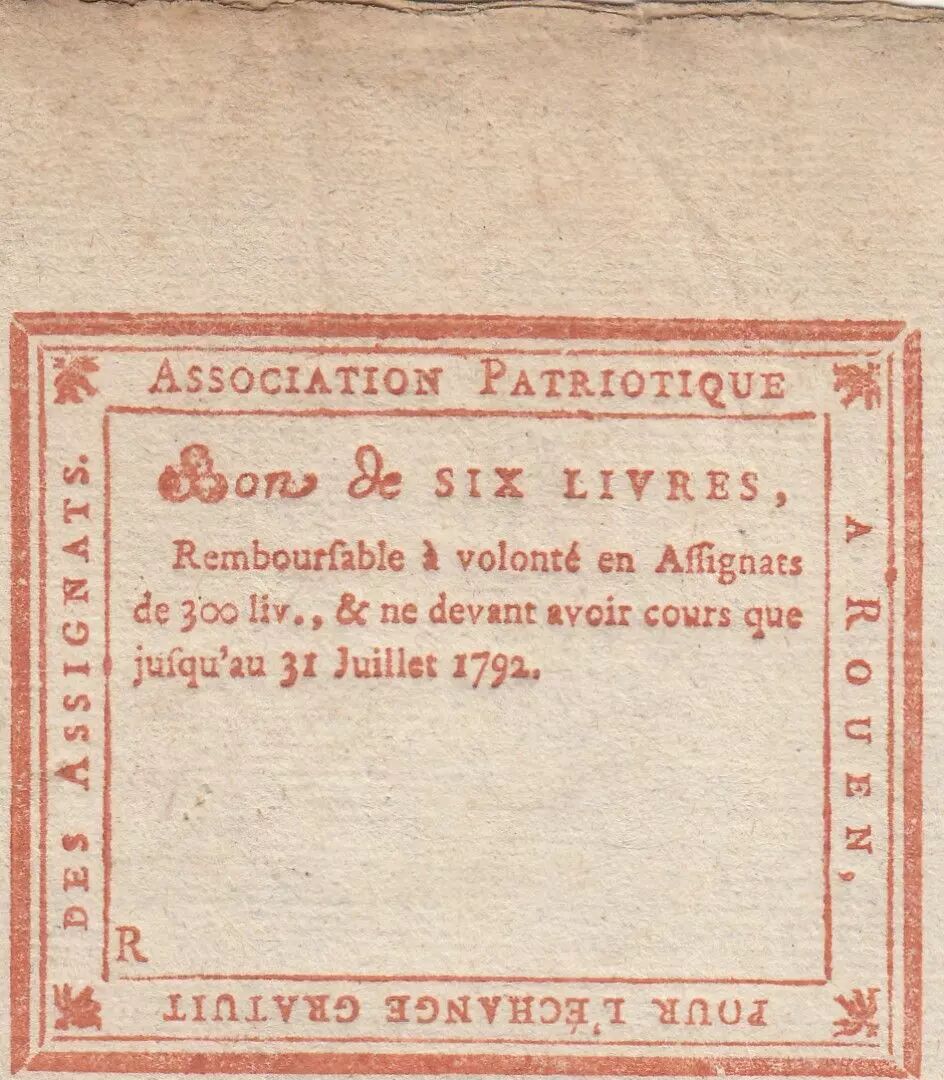 Home > French Banknotes > Necessity Money (1789-1945) > Confidence Notes 1789-1793 > France 6 Livres - Seine-inférieure - Rouen - Patriotic association - 31-07-1792