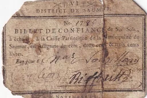 Banknote France 6 Sols - Maine et loire - District de Saumur - 26-11-1791