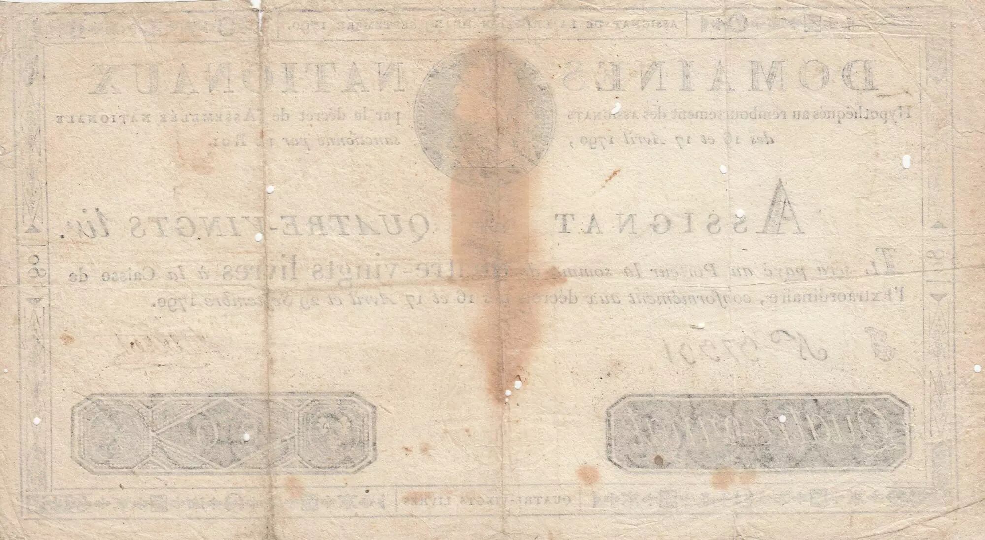 Accueil > Archivage > archivage-Billets Français > France 80 Livres Louis XVI - 29-09-1790 - Série J - TTB