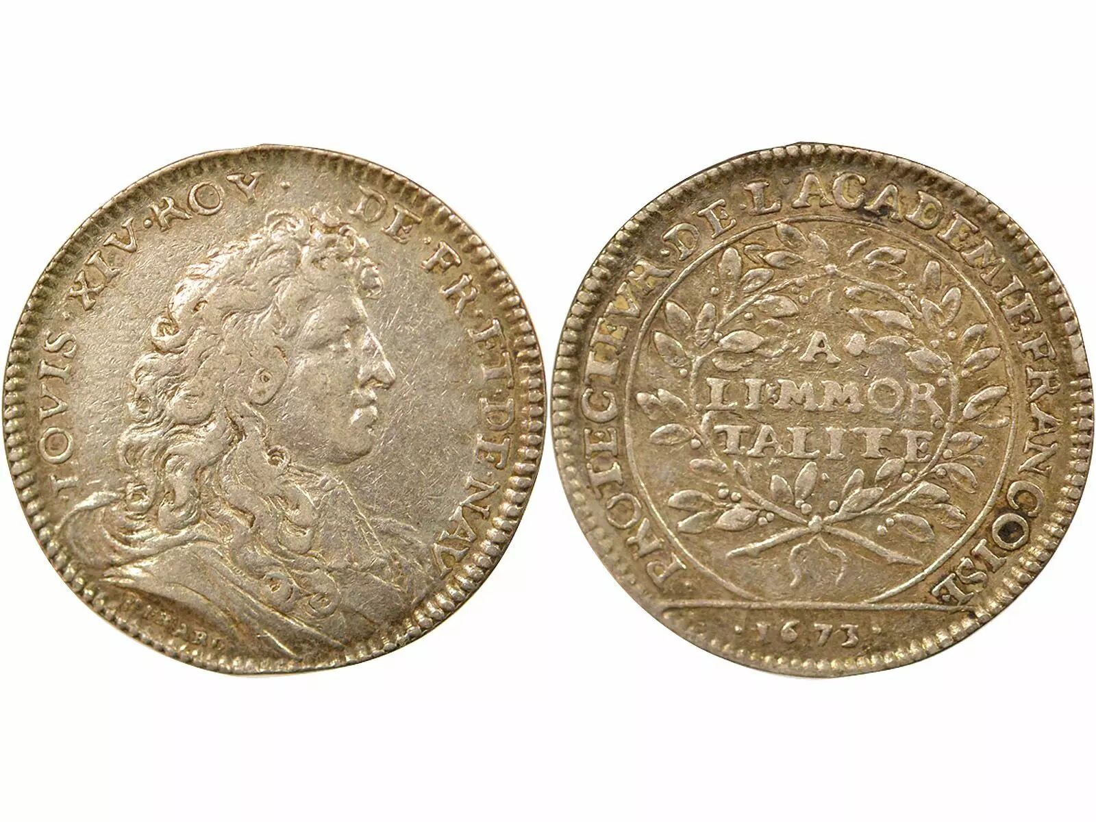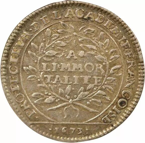 Revers : PROTECTEVR . DE . L'ACADEMIE . FRANCOISE / . 1673 . / A / LI*MMOR / TALITE