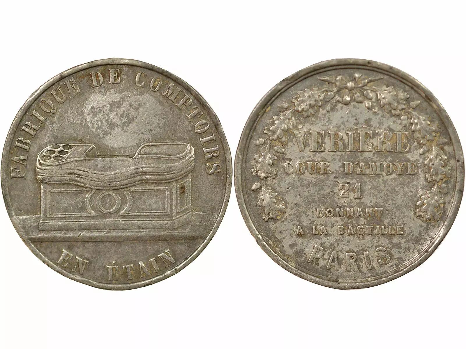 France Advertising, Tin Counters & Glass Factory - Tin Token - Paris