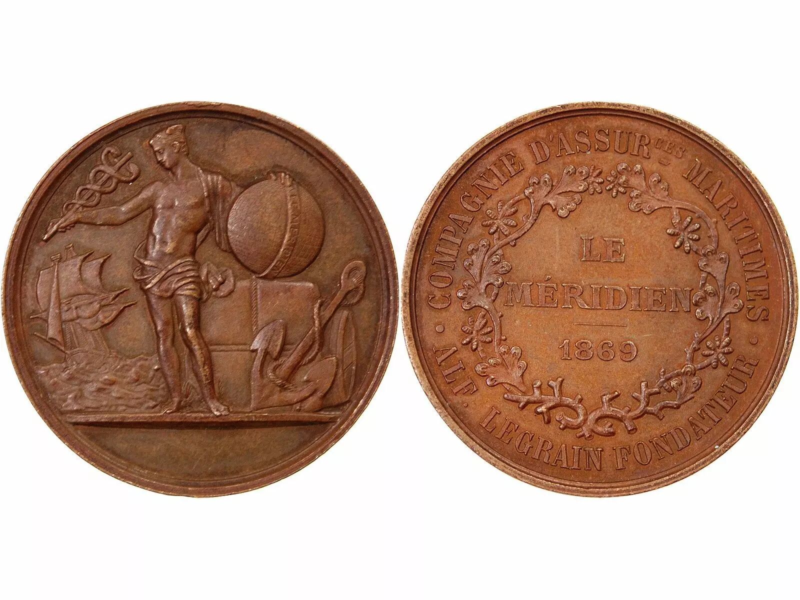 France Assurances Maritimes, Le Meridien - Medaille Cuivre 1869