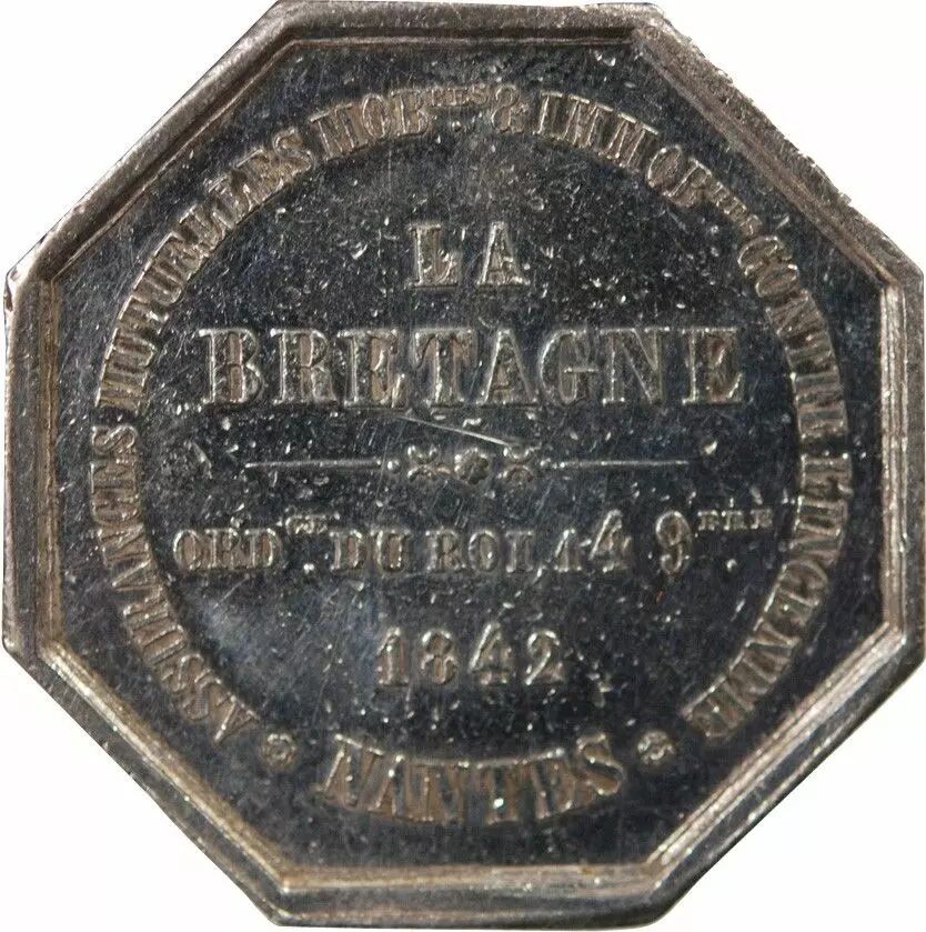 France Assurances Mutuelles Contre L'Incendie, La Bretagne - Jeton Argent 1842 - Nantes Poincon Main (1845-1860)