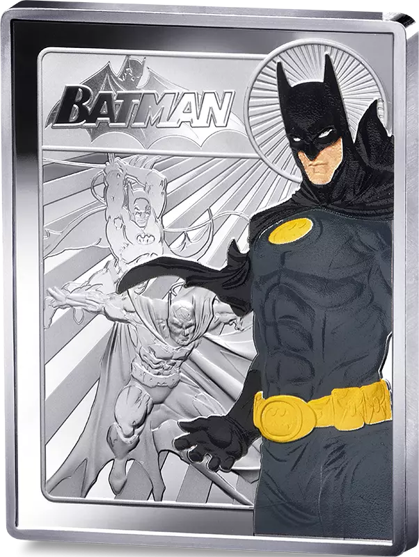 Pour devenir le justicier ultime, le Chevalier Noir a travaillé son corps et son esprit pour atteindre le summum de la force mentale et physique. Il est un maître détective et un expert en arts martiaux, mais sa plus grande arme reste son esprit. Batman a un plan pour chaque occasion, ainsi que des armes, des gadgets et des véhicules de haute technologie pour l'aider dans sa poursuite incessante de la justice ! Sur la face, on retrouve Batman et son évolution graphique. Son costume iconique est sublimé par la colorisation. Au revers de cette monnaie, une représentation de la Justice League en format bande dessinée avec la mention « 90 ans » ainsi que la valeur faciale et le sigle de la république française.