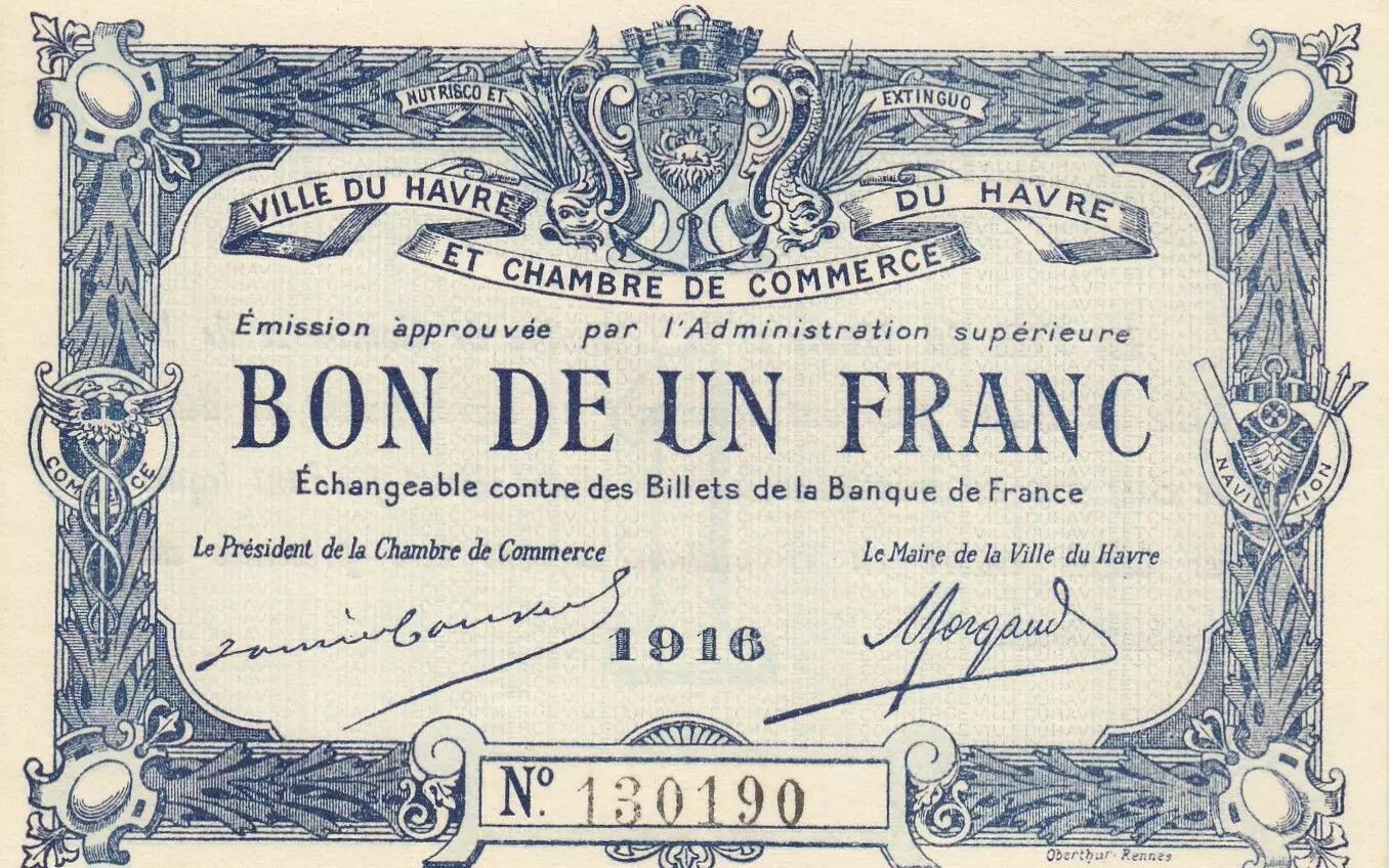 Billet France Bon de 1 franc - Chambre de commerce du Havre - 1916 - Numéro 130190