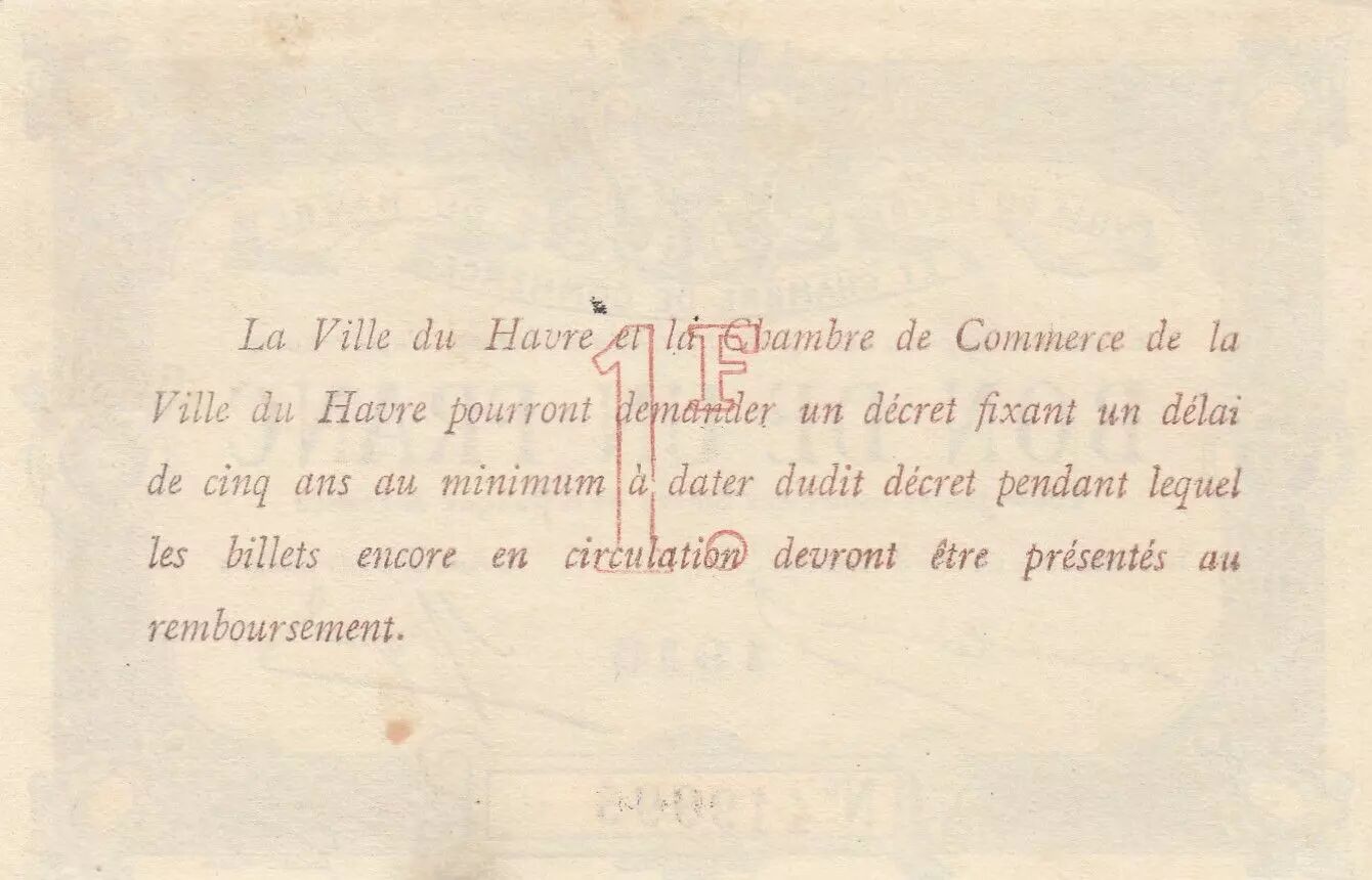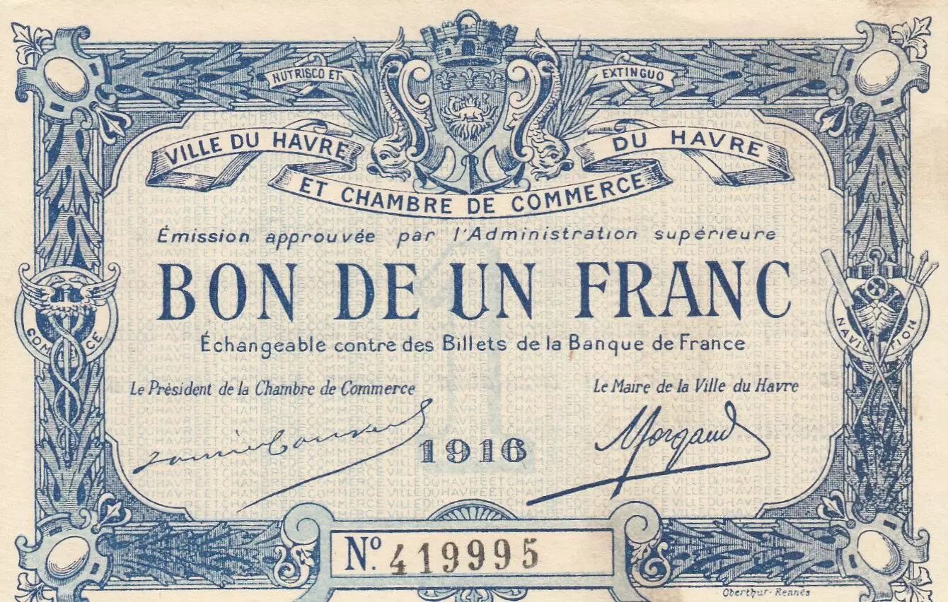 Billet France Bon de 1 franc - Chambre de commerce du Havre - 1916 - Numéro 419995