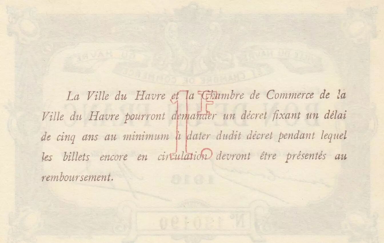 Home > > France Bon de 1 franc - Le Havre Chamber of Commerce- 1916 - Number 130190