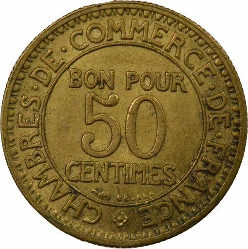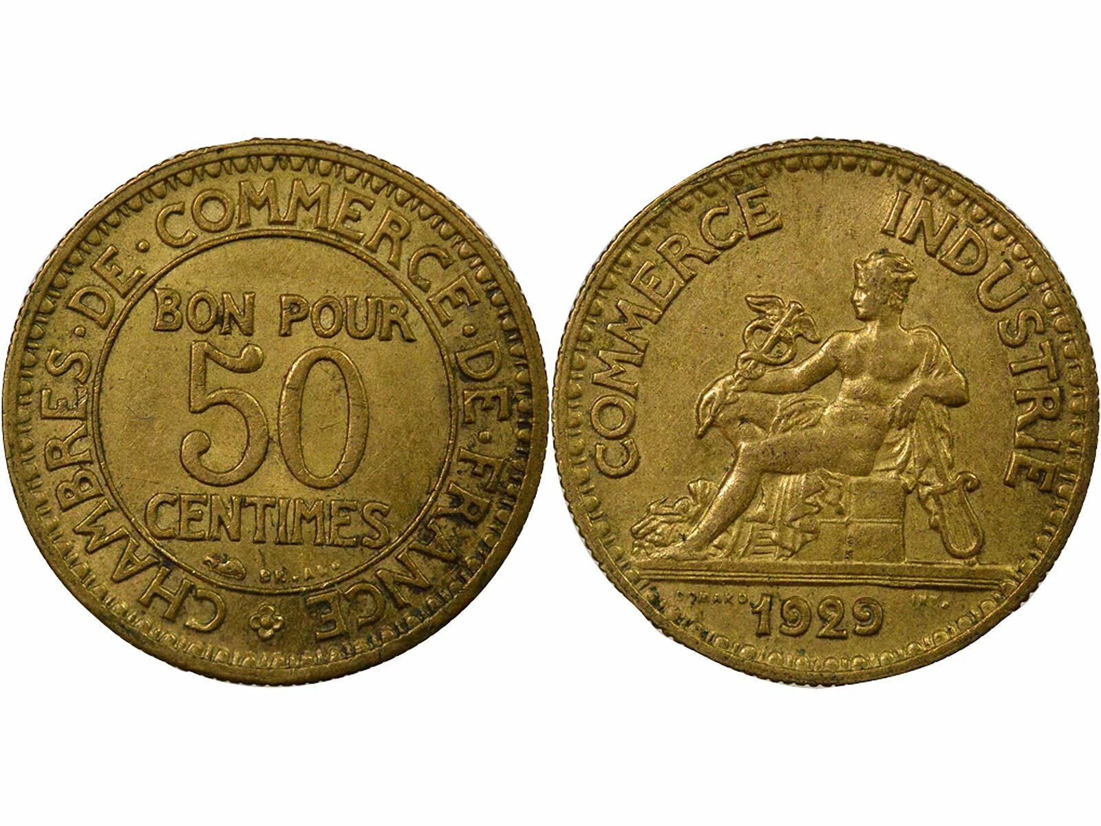 Home > French coins (470 à 2002) > Modern Currencies (1789 to 2002) > 50 Centimes / 1/2 Franc > France Bon pour 50 Centimes, Chamber of Commerce - 1929 Paris
