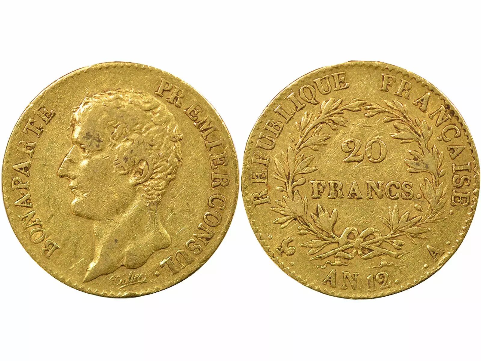 Coin France Bonaparte 1st Consul - 20 Gold Francs - Year 12 A Paris